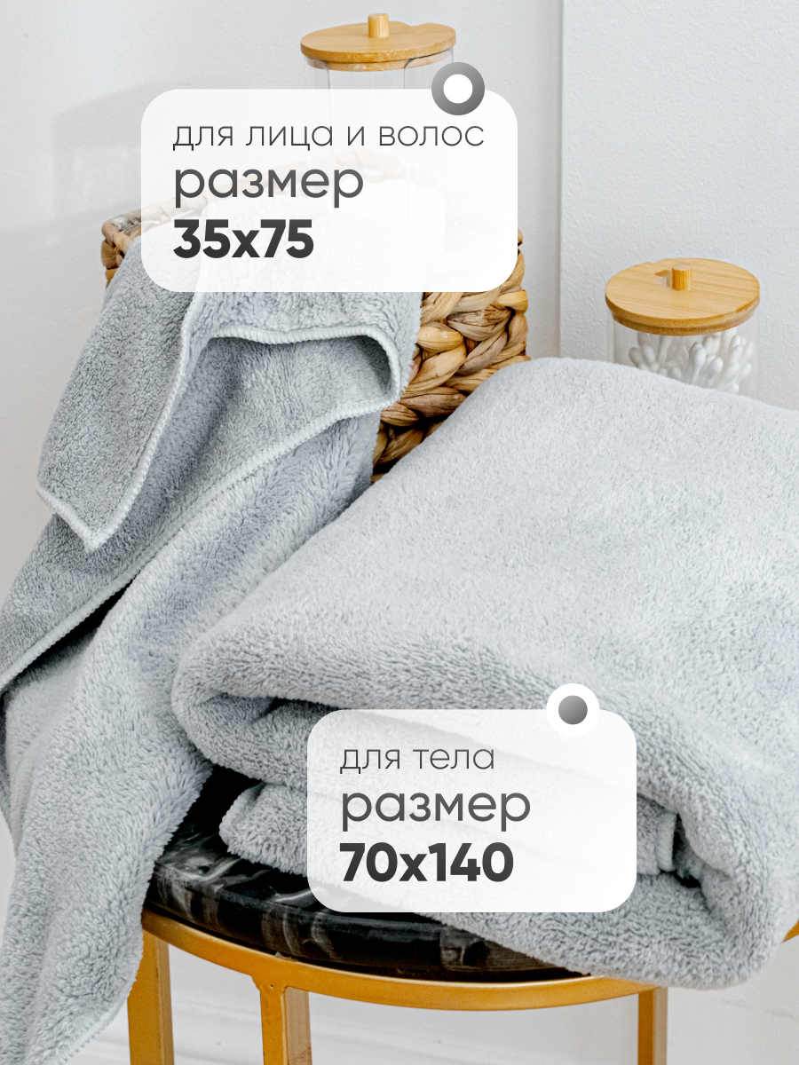 Полотенце банное набор 2 шт Павлина 70х140 и 35х75 см, из микрофибры, серый интересное: