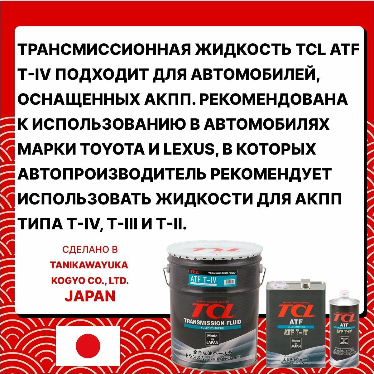Жидкость для АКПП TCL ATF TYPE T-IV, 4л A004TYT4