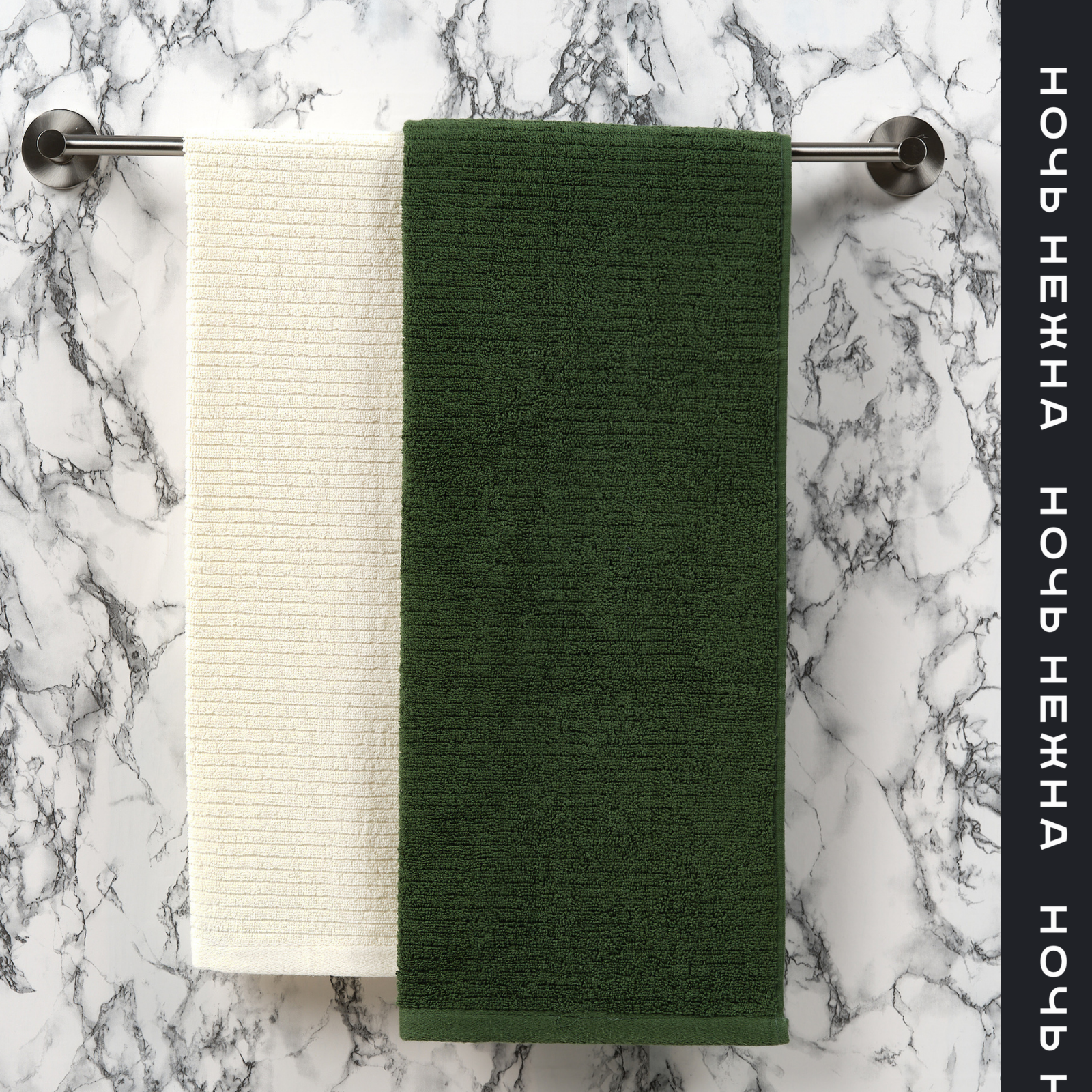 Купить Полотенце махровое Ночь Нежна 50*90см - 2шт цвет нежно-бежевый, милитари, набор полотенец махровых