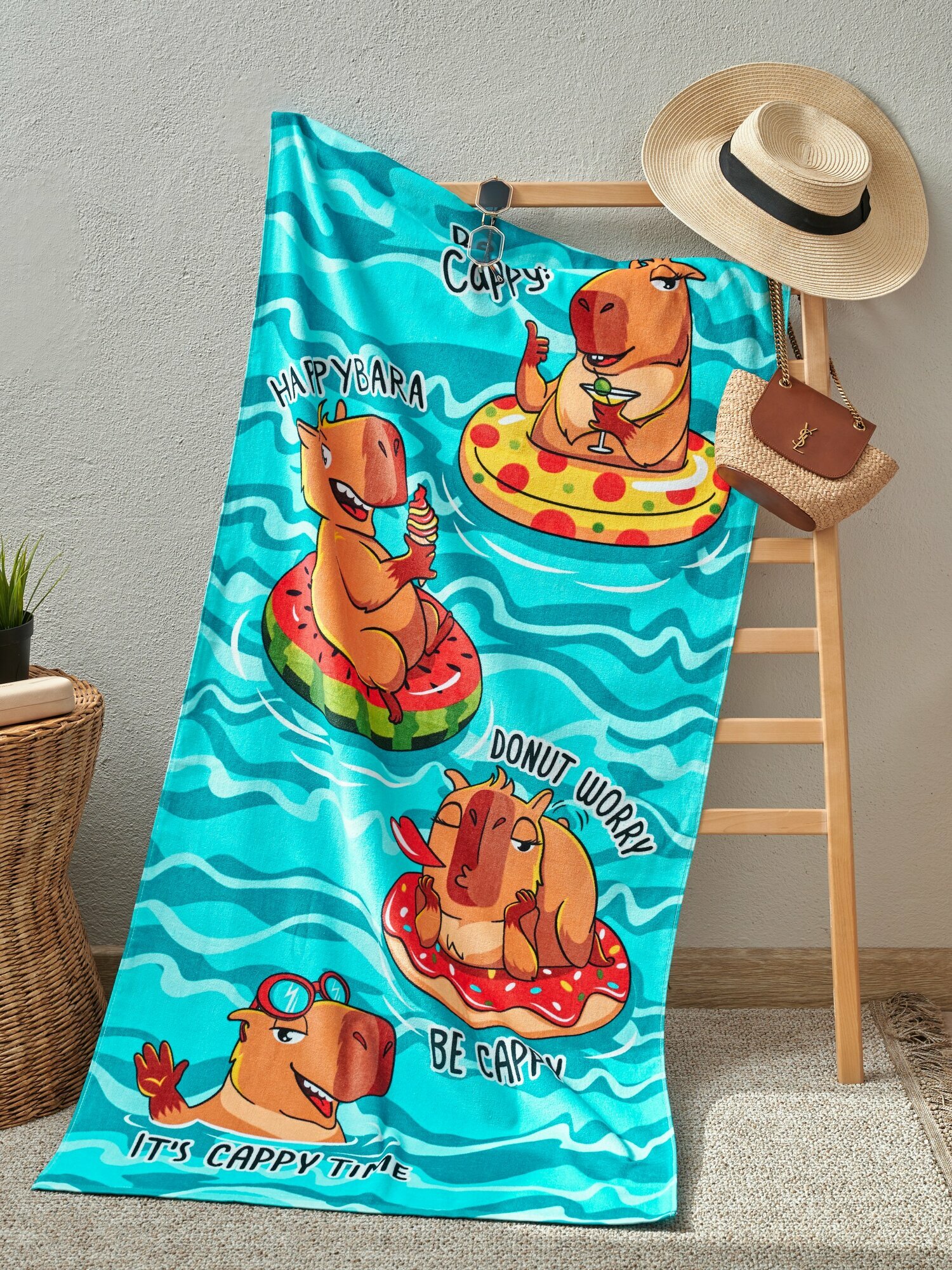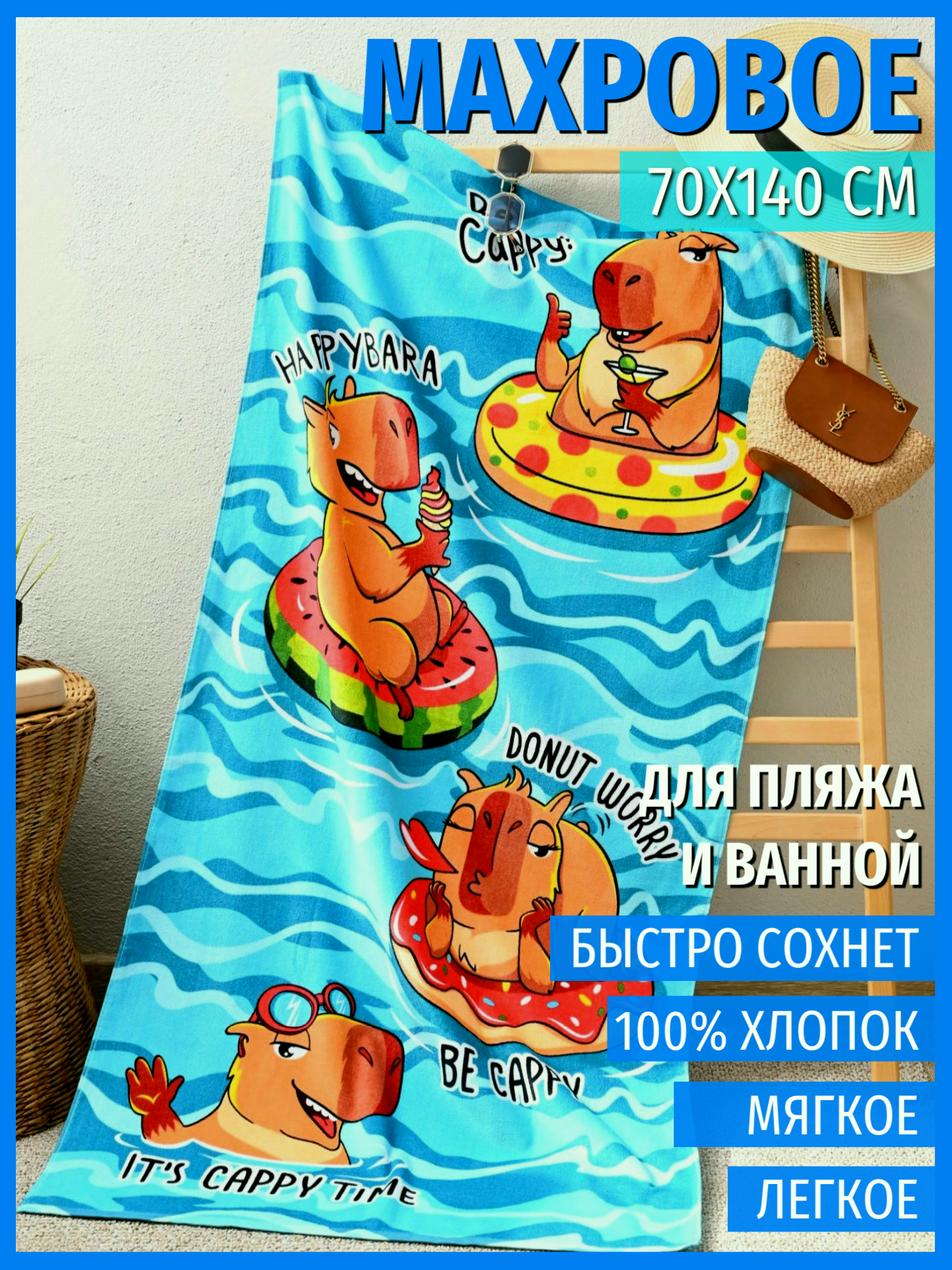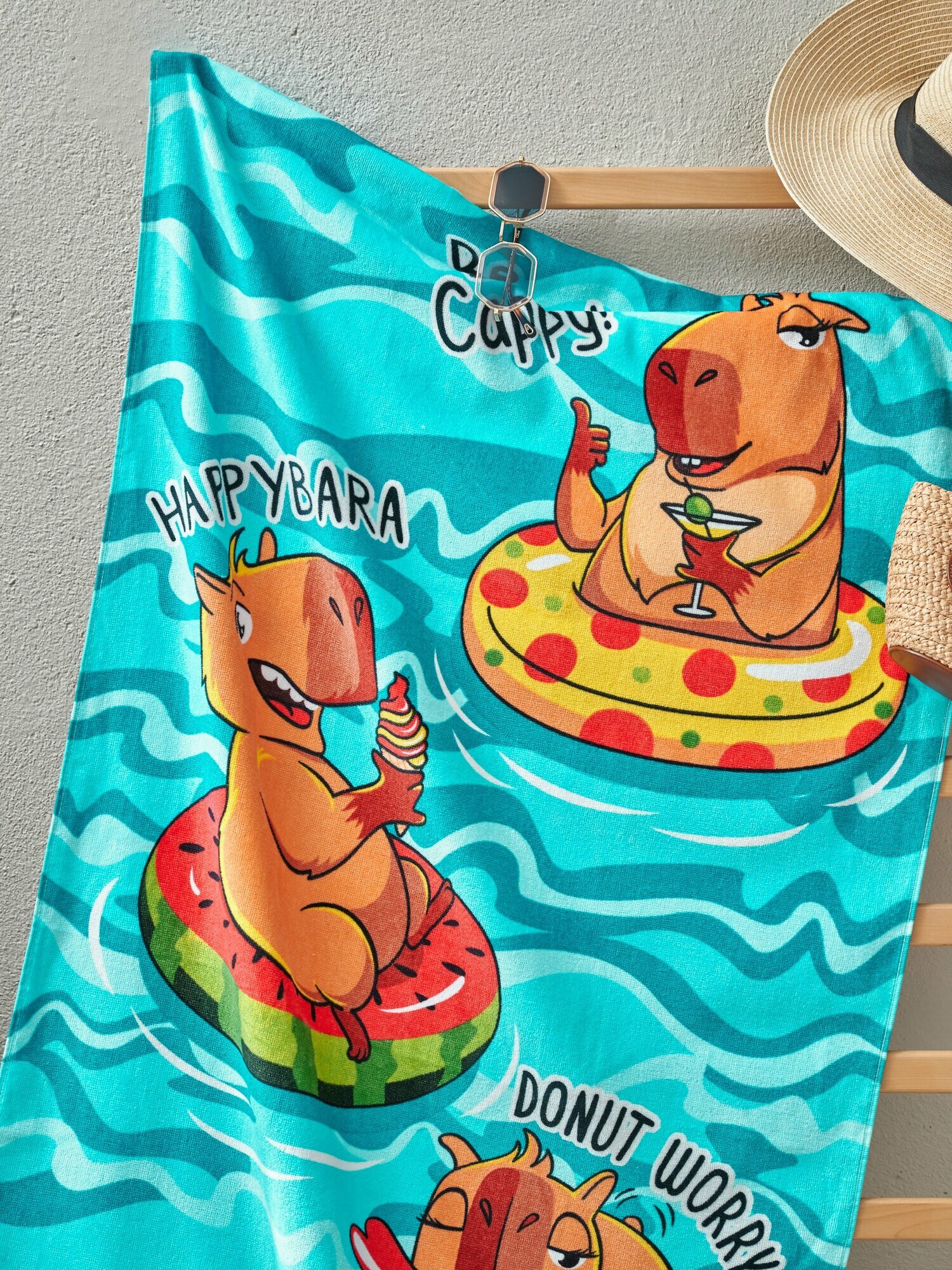 СохранитьПолотенце банное пляжное махровое Капибара, 100% хлопок, 70х140 см интересное: