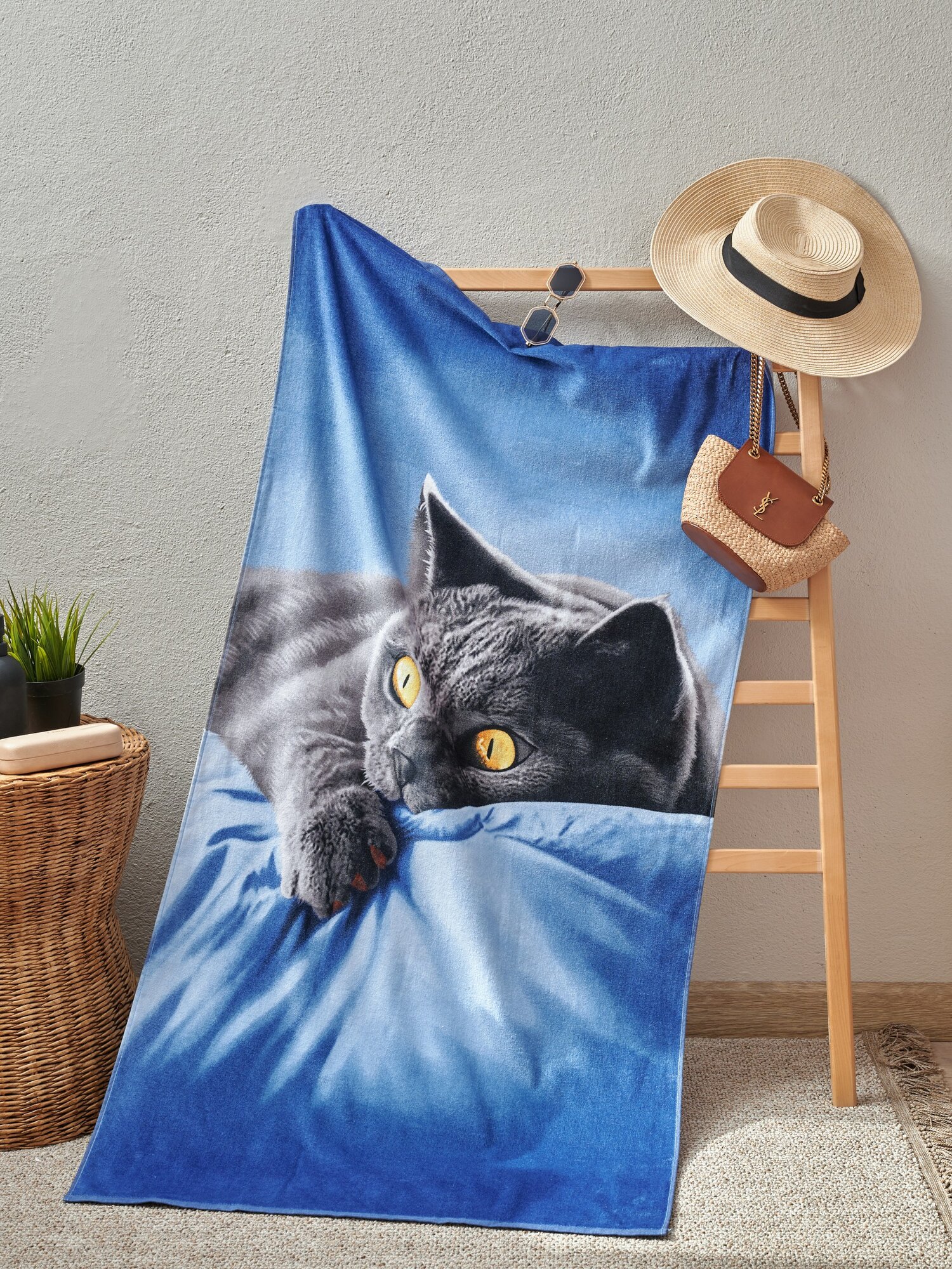 Полотенце банное пляжное махровое Коты компания, 100% хлопок, 70х140 см