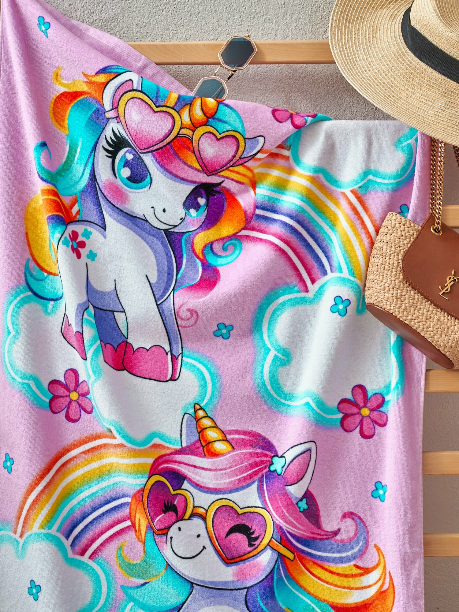 Купить Полотенце банное пляжное махровое Пони единороги, 100% хлопок, 70х140 см