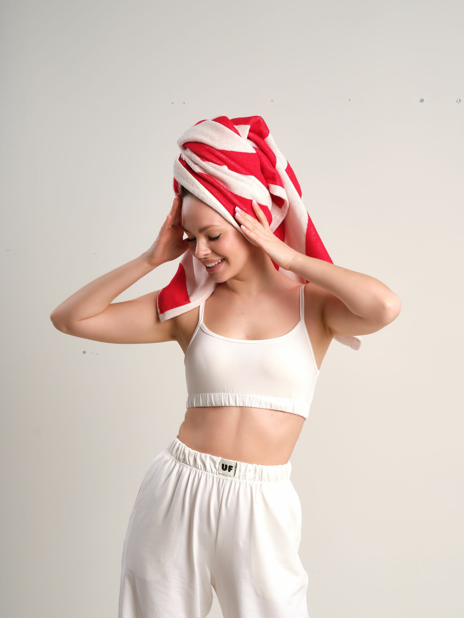 Купить Полотенца махровые набор Urban Family 50х90 см 2шт полоски цвет красный для рук и лица