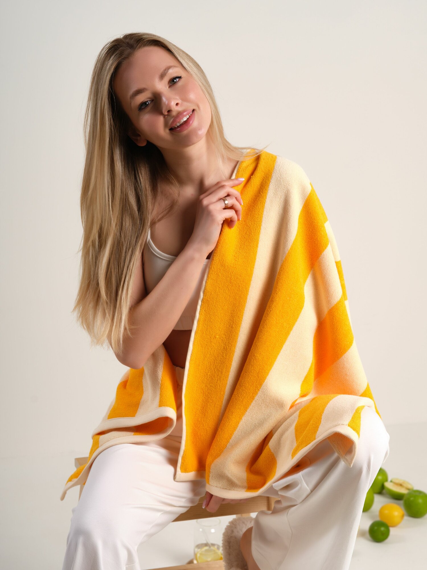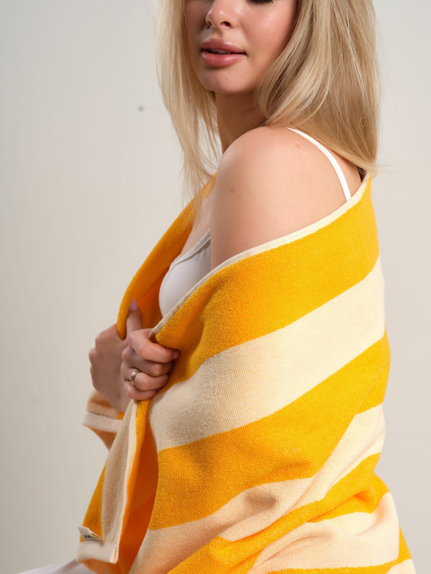Полотенца махровые набор Urban Family 50х90 см 2шт полоски цвет желтый для рук и лица