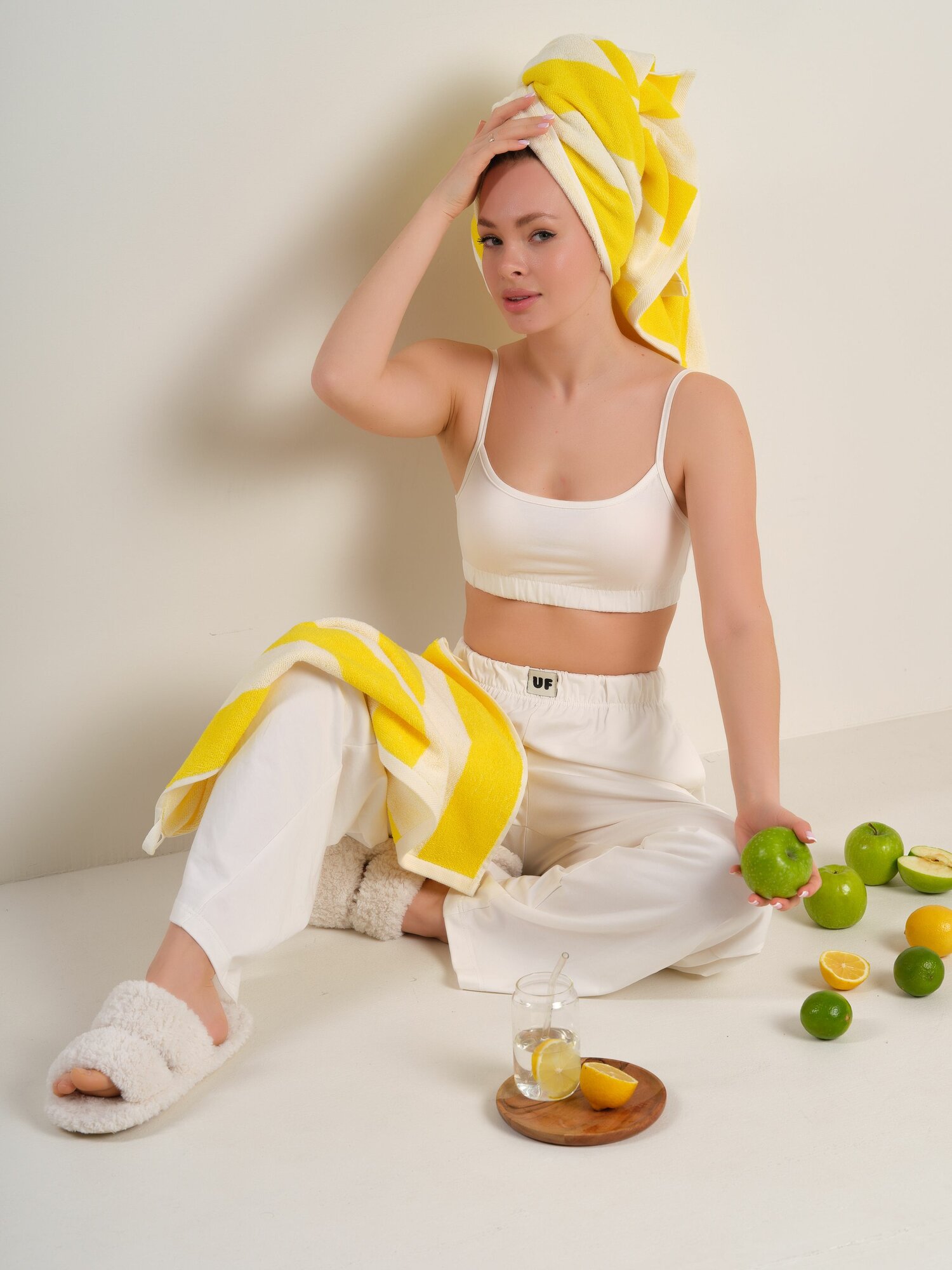 Купить Полотенца махровые набор Urban Family 50х90 см 2шт полоски цвет желтый для рук и лица