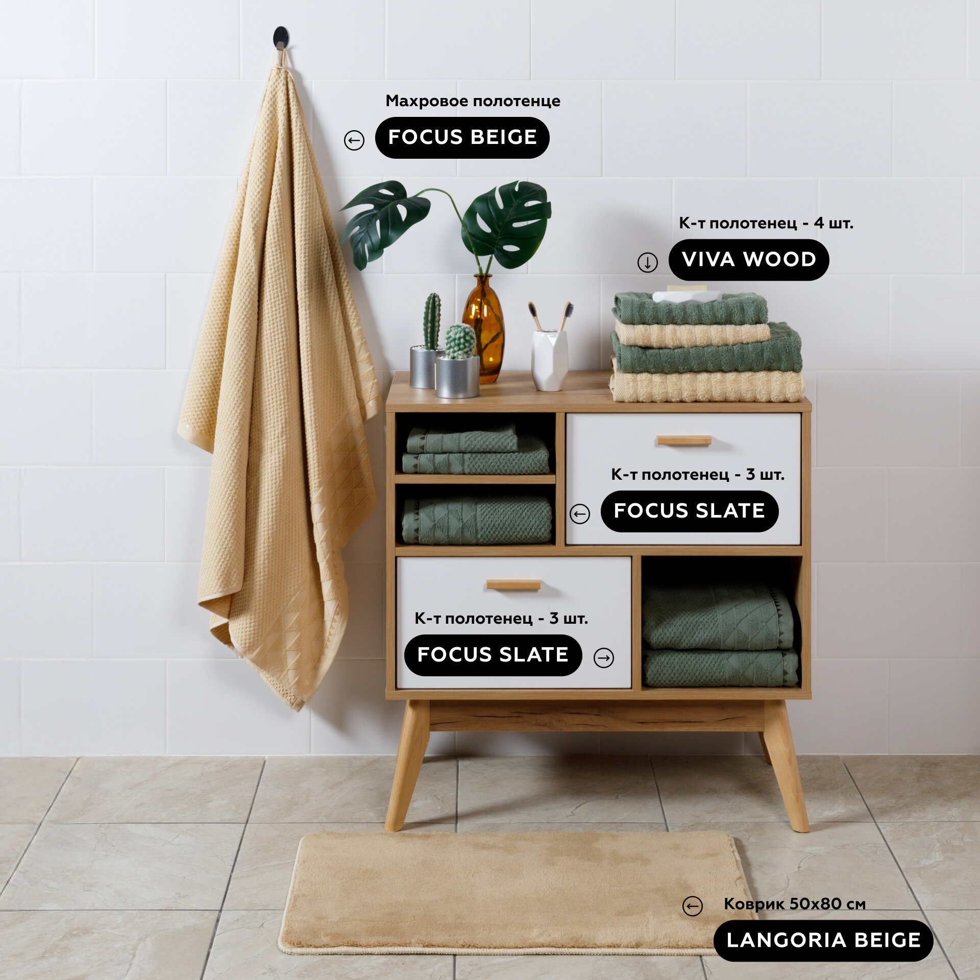 Полотенце банное 70х140 см FOCUS OLIVE 2 шт на подарок