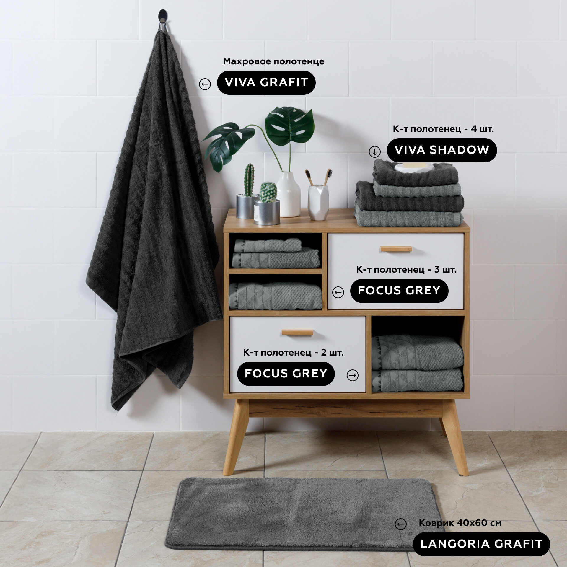 Набор банных полотенец FOCUS GRAFIT 70х140 см, 2 шт на подарок