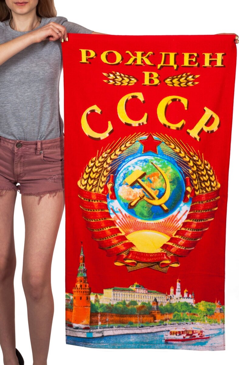 Полотенце Военпро "Рождён в СССР", махровое, хлопок 100%, красное интересное: