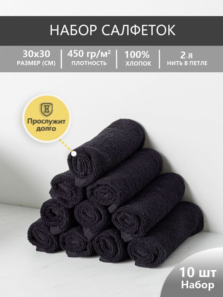 Купить Набор махровых салфеток осибори Sandal "люкс" 30*30 см, цвет - черный, пл. 450 гр. - 10 шт.