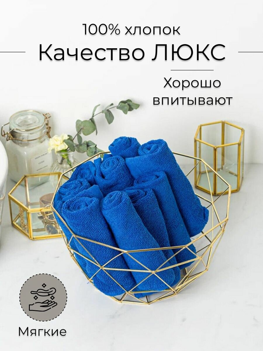 Купить Набор махровых салфеток осибори "люкс" 30*30 см, цвет - синий, пл. 450 гр. - 10 шт.