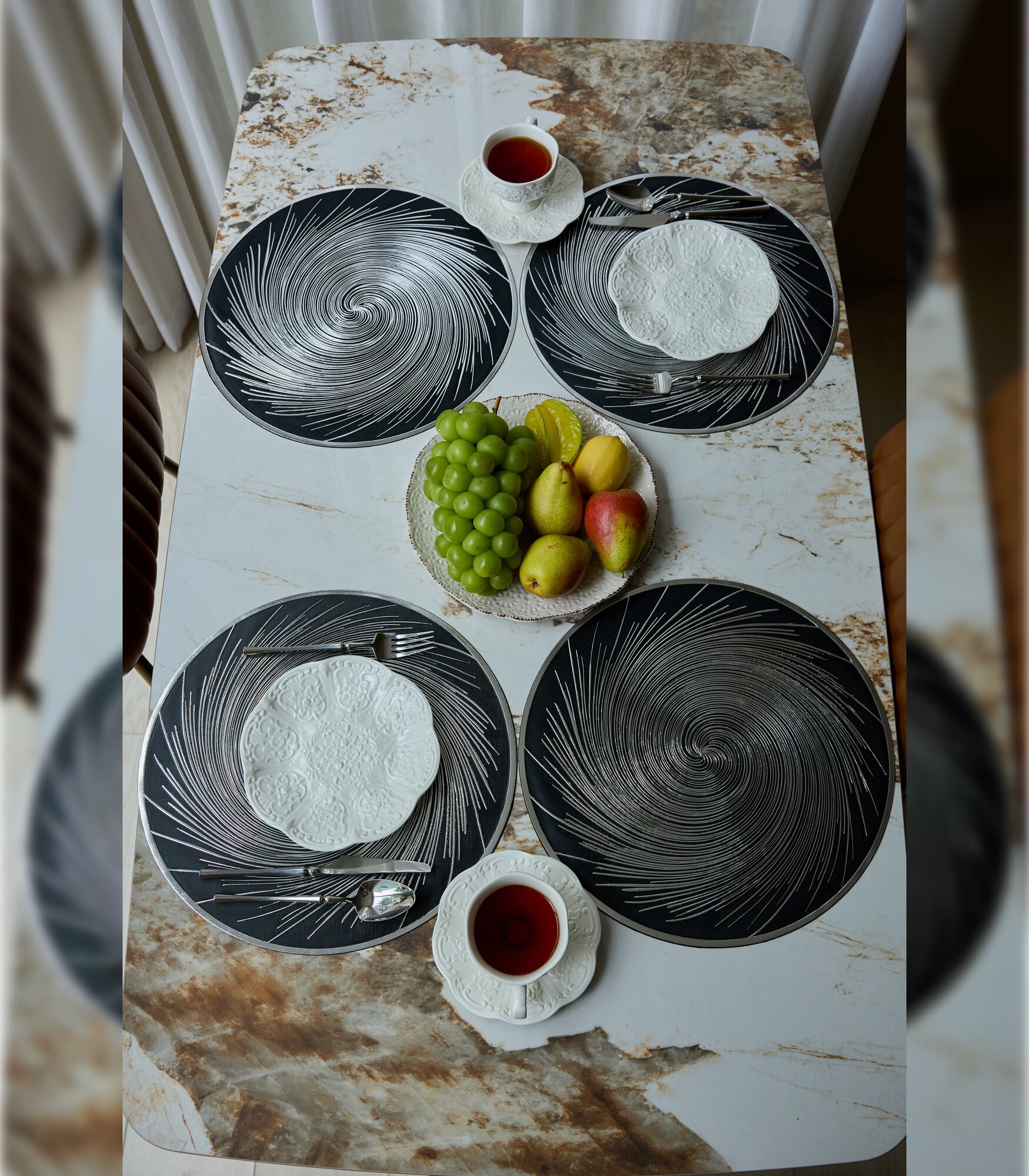 Набор сервировочных салфеток "Цветок" 4 штуки черные с серебром D38см