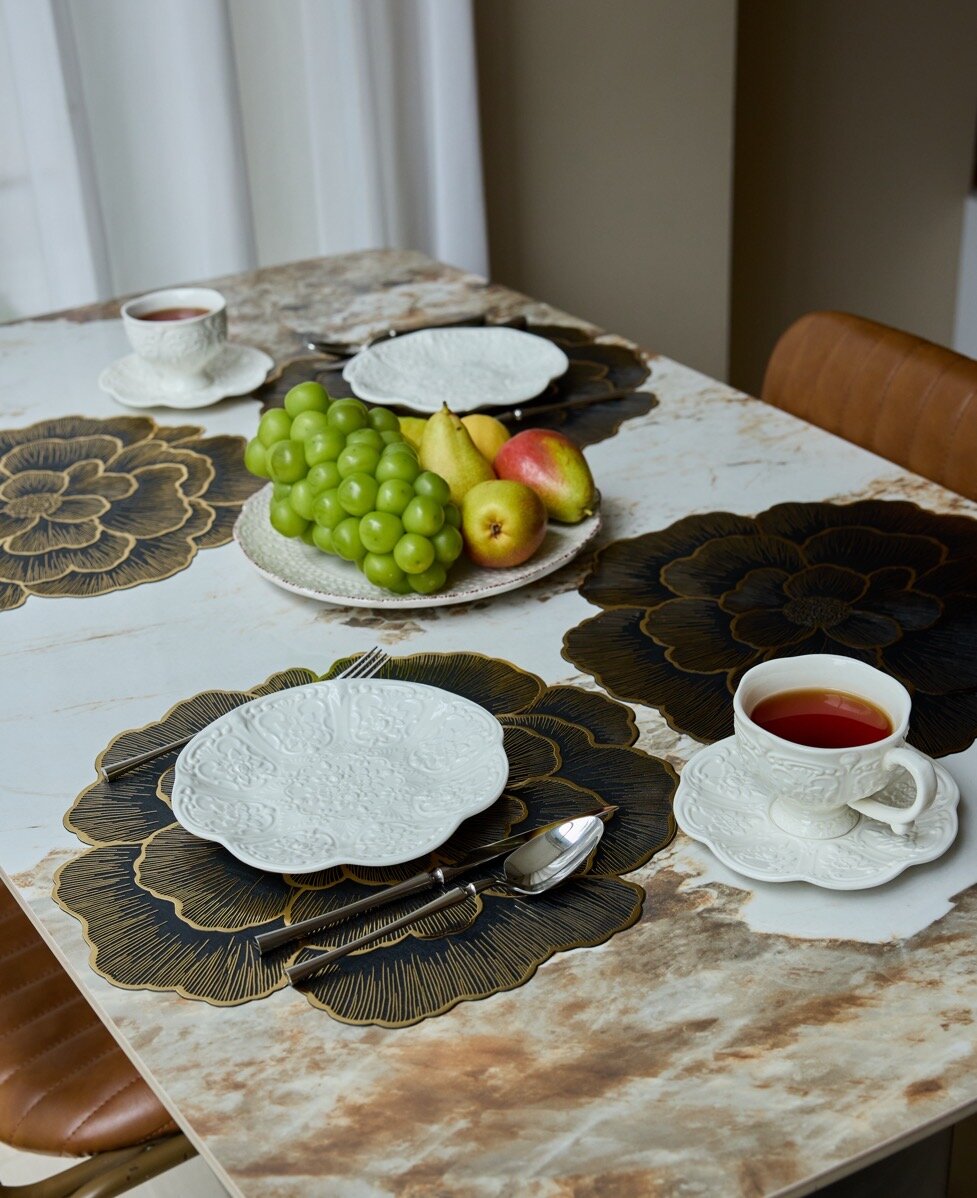 СохранитьНабор сервировочных салфеток "Цветок" 4 штуки черные с золотом D38см интересное: