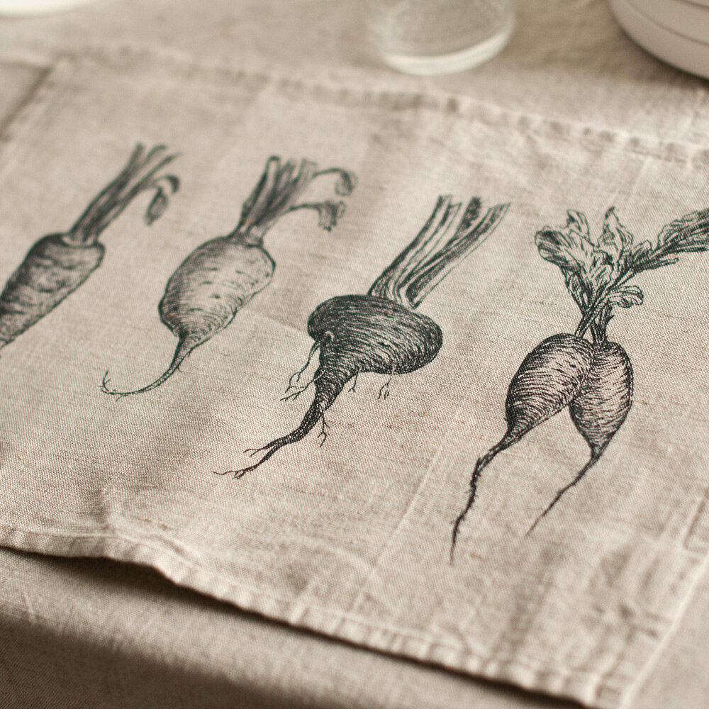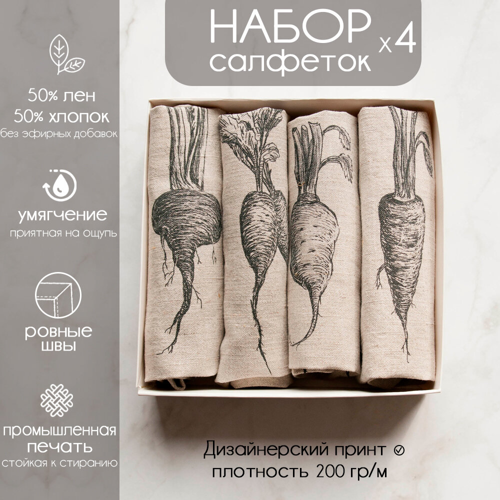 Салфетки на стол с принтом "овощи", 4 штуки, 29x39 см, умягченный лен интересное: