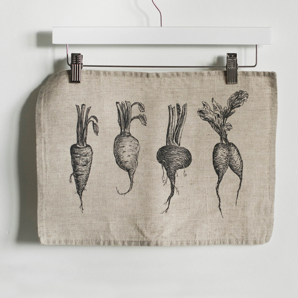 Купить Салфетки на стол с принтом "овощи", 4 штуки, 29x39 см, умягченный лен