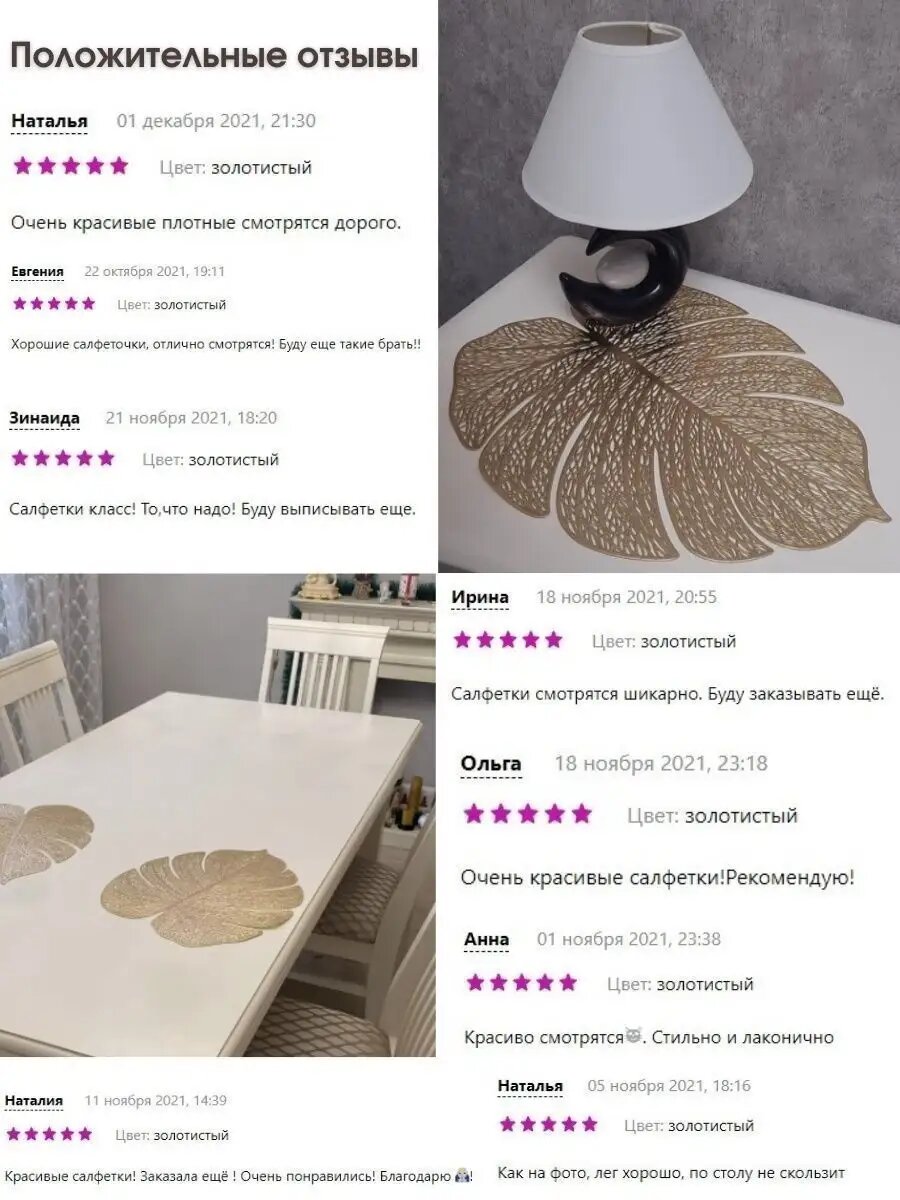 Ниже Вы можете прочитать отзывы на Сервировочные салфетки AROMAFLOW "Лист Монстеры", ПВХ, термостойкость, ознакомится с подробными характеристиками, посмотреть интересные обзоры и фотографии на Сервировочные салфетки AROMAFLOW "Лист Монстеры", ПВХ, термостойкость.