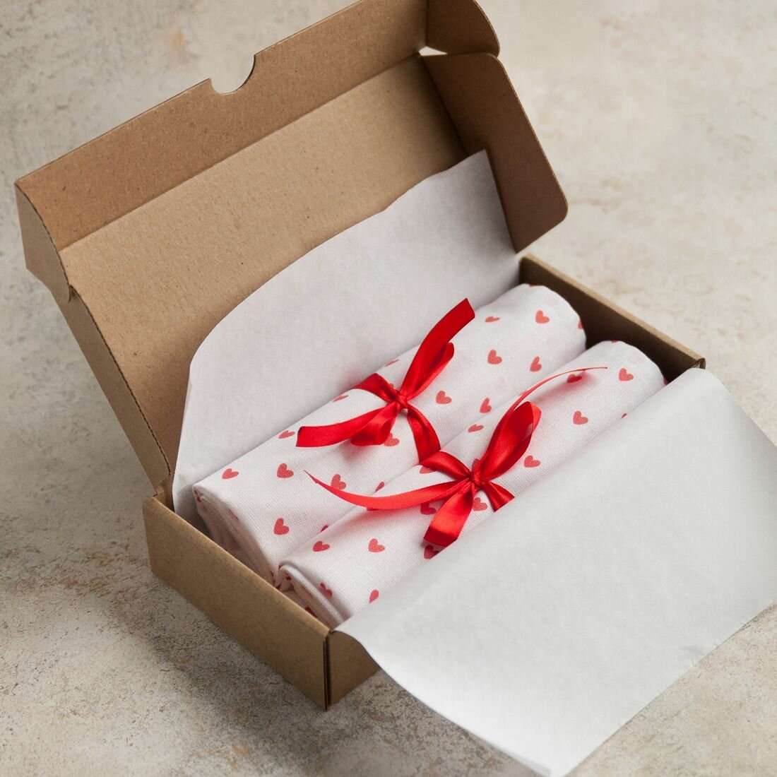 Купить Набор салфеток с принтом "сердечки" 2 шт. из льняной ткани
