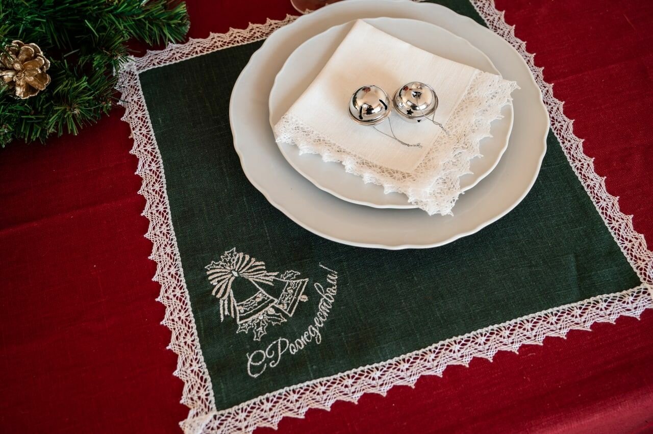 Салфетки на стол сервировочные, "Снегирь", 30х30 см, цвет небеленный лён, 1 шт.