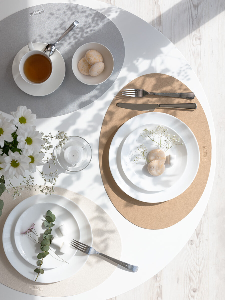 Набор салфеток 2шт. DeNASTIA иск. кожа (овал) 45х32см, двусторонняя бежевый/молочный E000372 интересное: