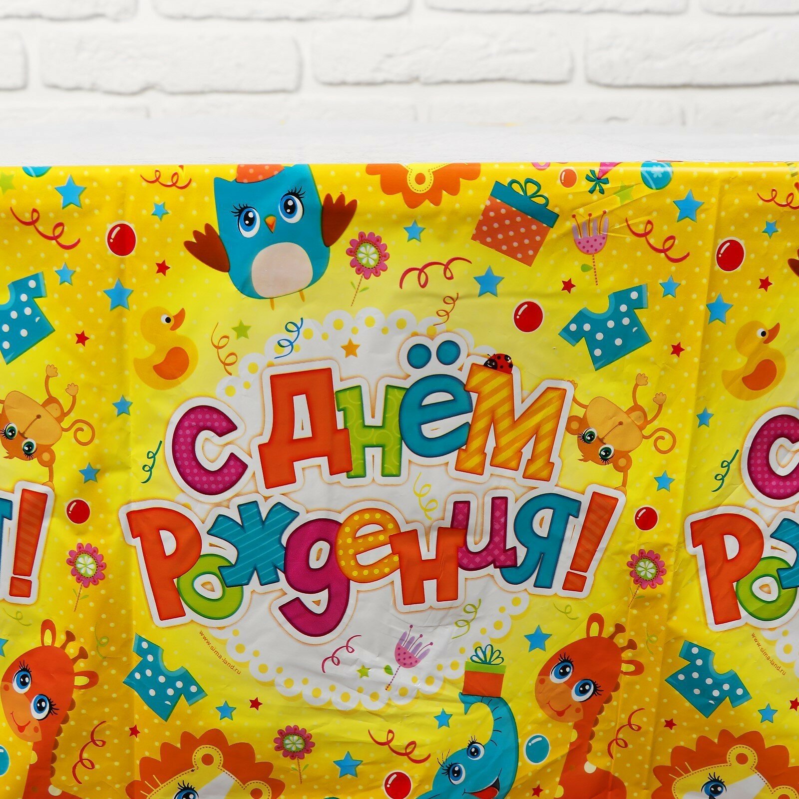 Купить Скатерть праздничная одноразовая Страна Карнавалия Животные с подарками, С Днем рождения, 137х182 см