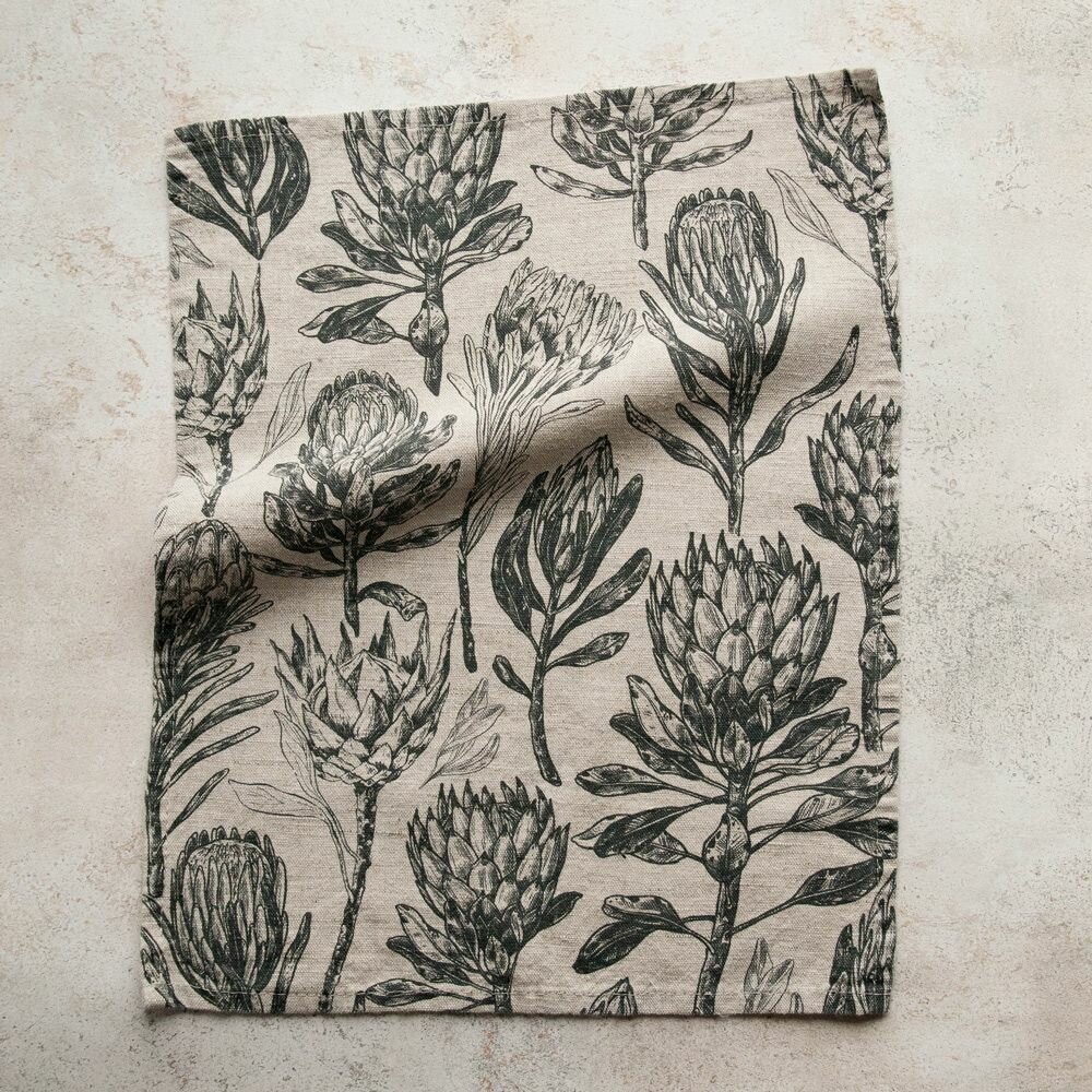 Купить Набор салфеток с принтом "протеи" из льняной ткани