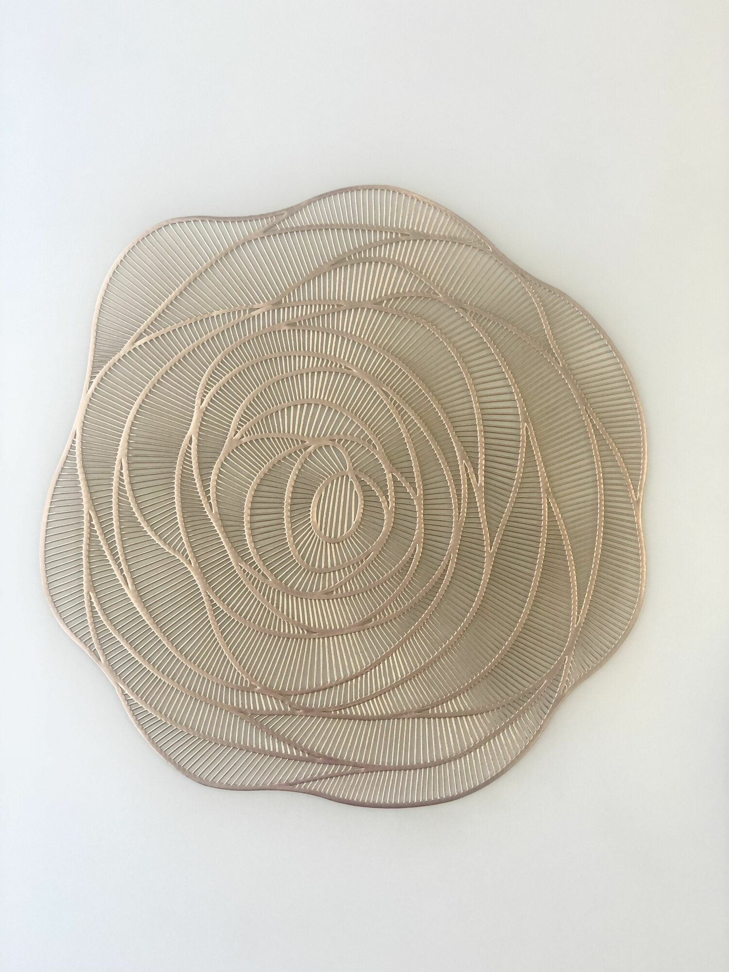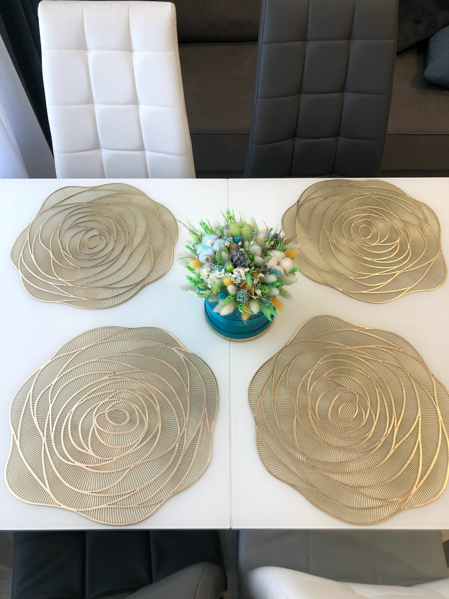 СохранитьСалфетки для сервировки стола Роза золото, 4 шт, круглые, диаметр 38 см. Подставка под тарелки сервировочные из ПВХ. Набор плейсматов интересное:
