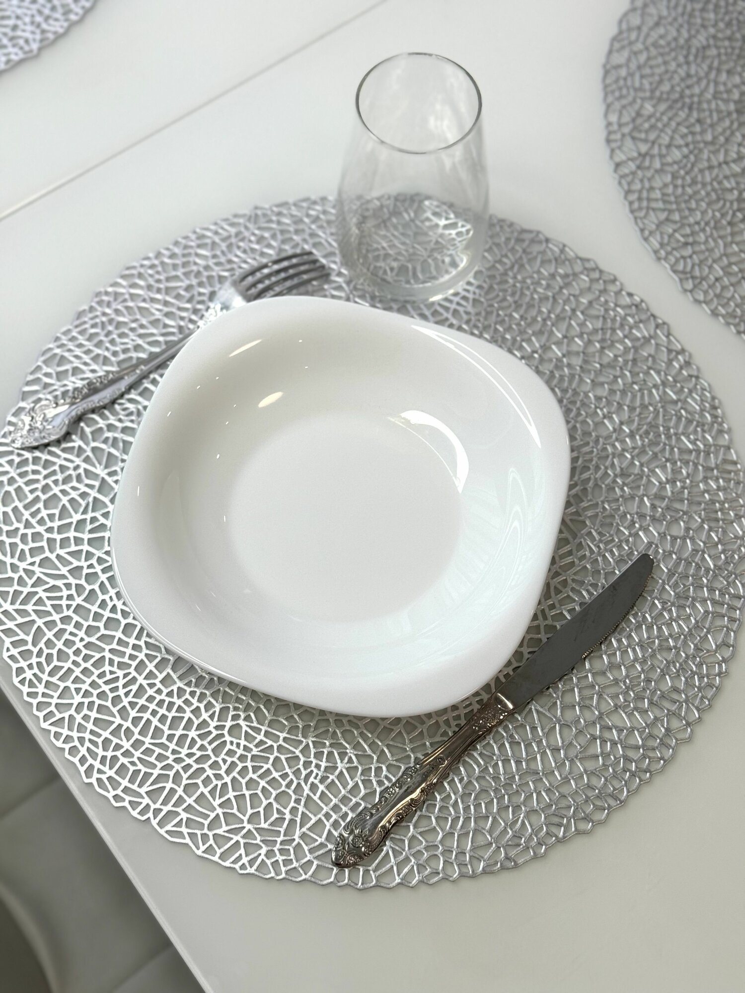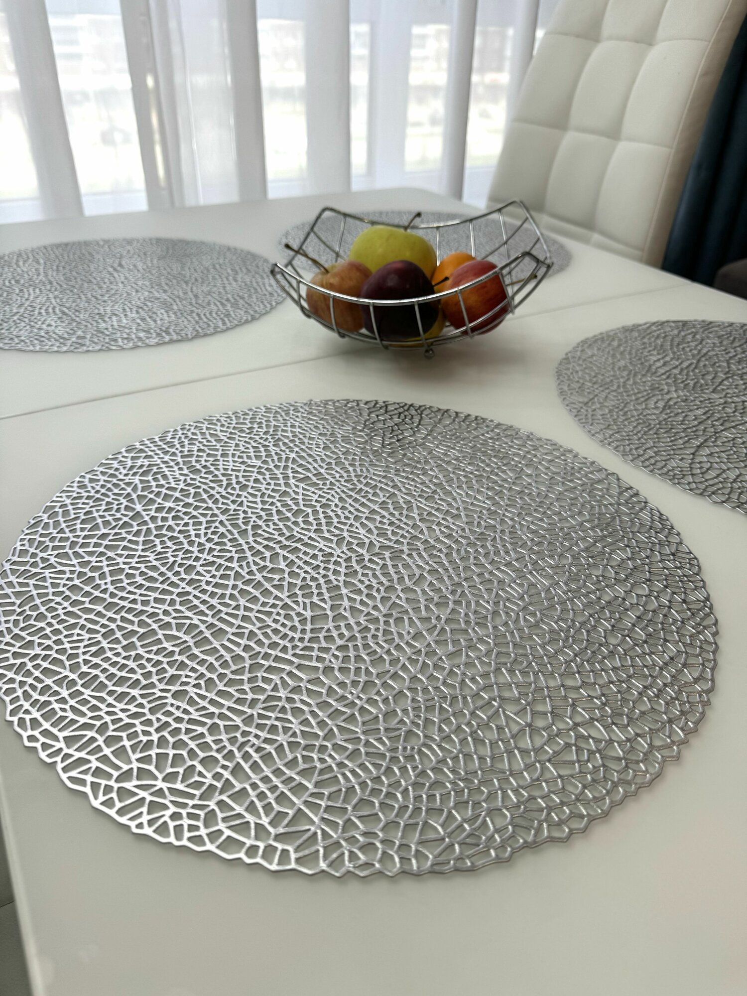 СохранитьСалфетки для сервировки стола серебро, 4 шт, круглые, диаметр 38 см. Подставка под тарелки сервировочные из ПВХ. Набор плейсматов интересное: