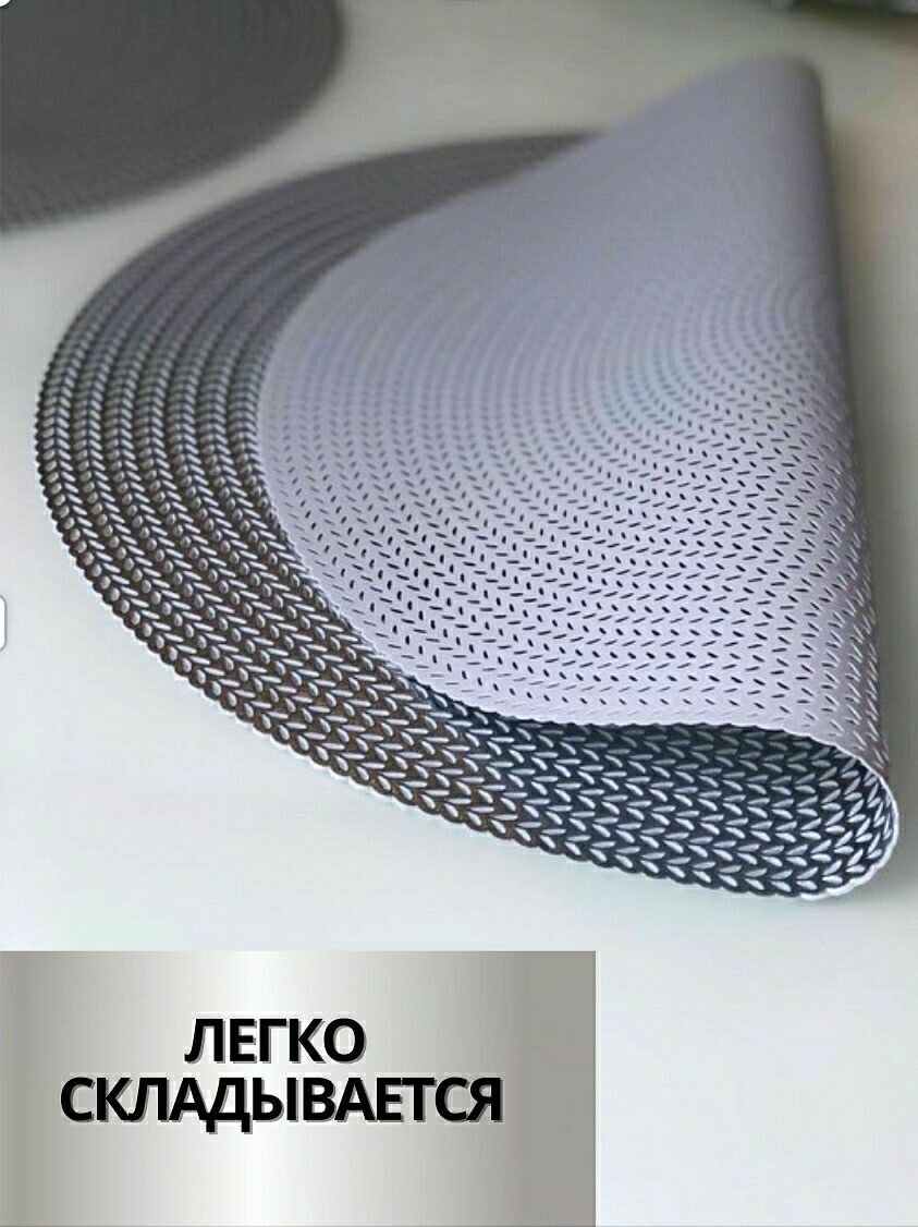 СохранитьСалфетки для сервировки стола Листики серебро, 4 шт, круглые, диаметр 38 см. Подставка под тарелки сервировочные из ПВХ. Набор плейсматов интересное: