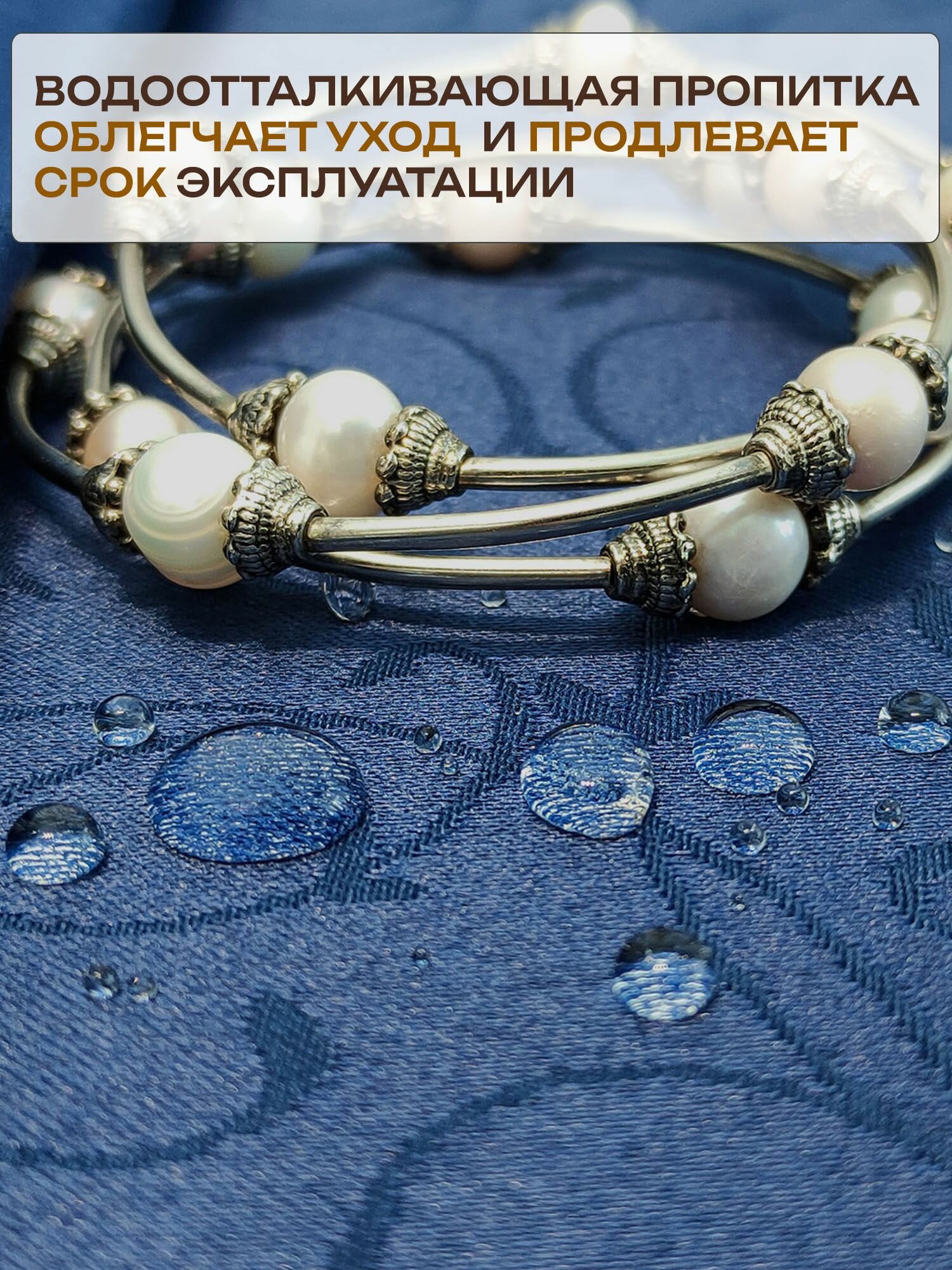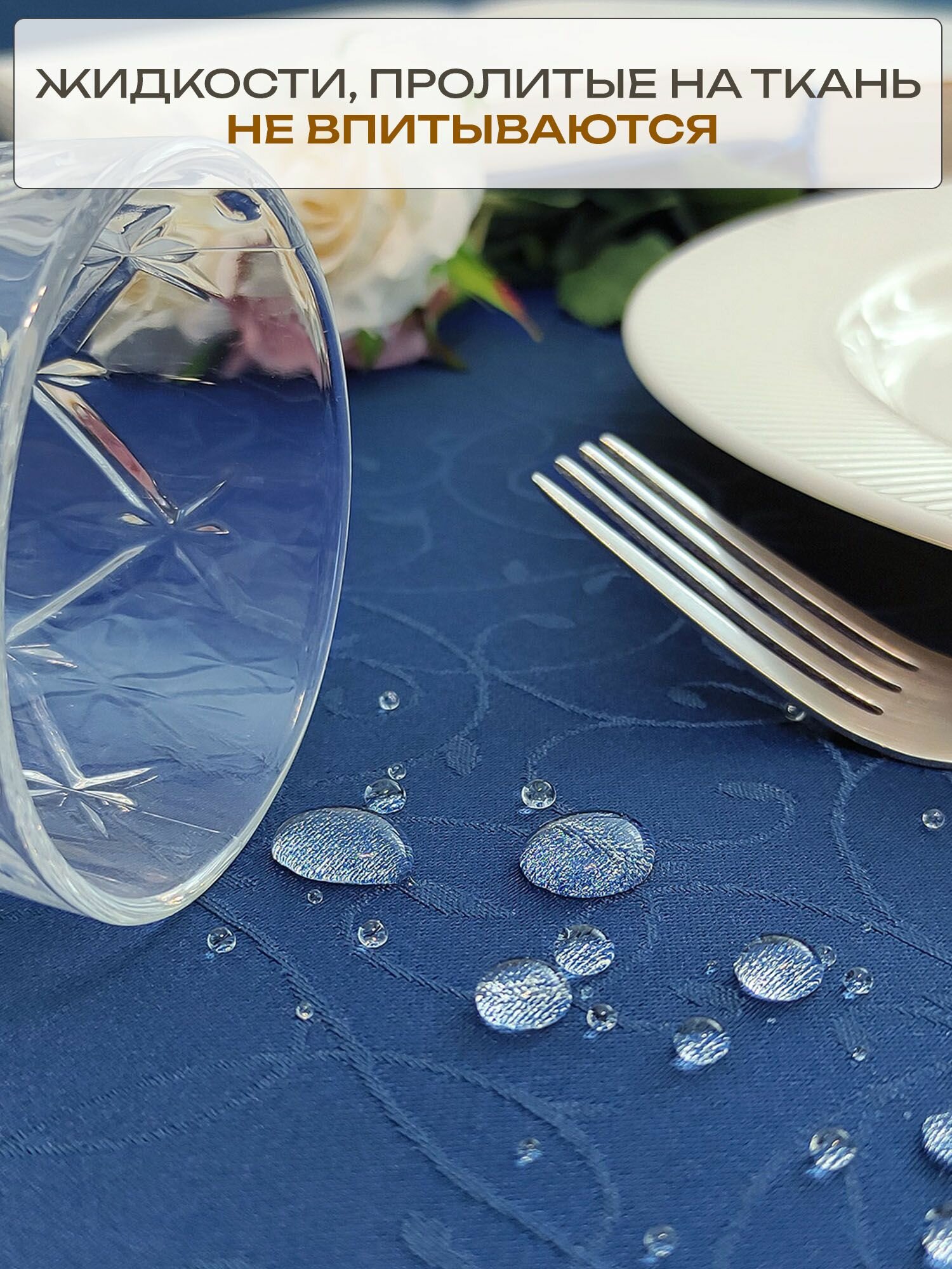 Скатерть 145x240 см. цвет синий узор 1812 тонкий завиток с пропиткой от загрязнений