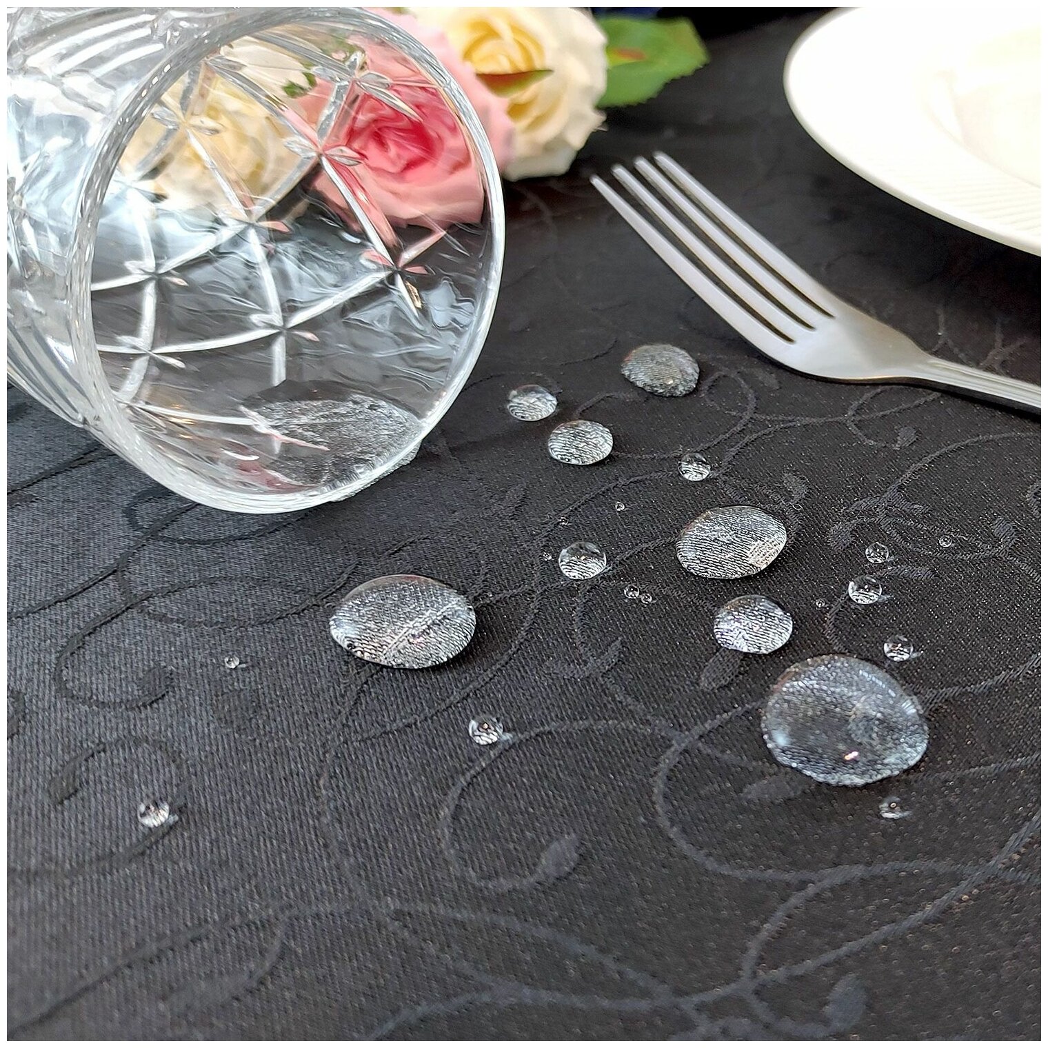 Скатерть 110x150 см. цвет черный узор 1812 тонкий завиток с пропиткой от загрязнений
