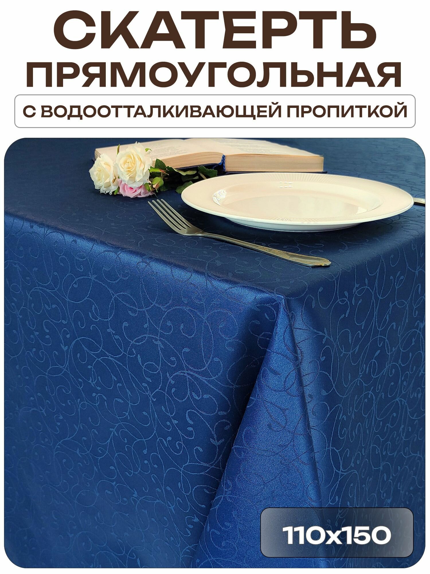 Скатерть 145x240 см. цвет синий узор 1812 тонкий завиток с пропиткой от загрязнений