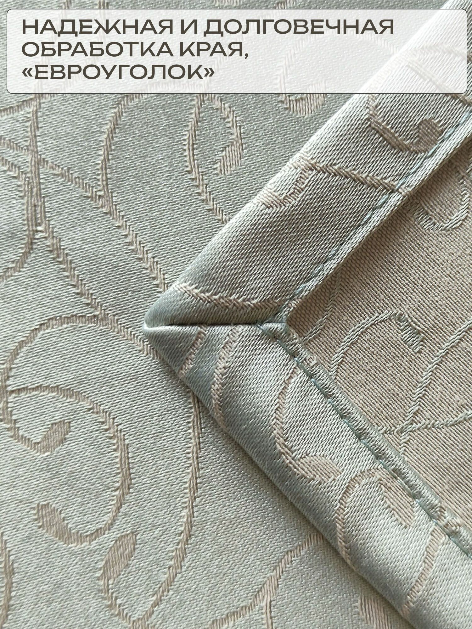 Скатерть 145x260 см. цвет фисташковый узор 1812 тонкий завиток с пропиткой от загрязнений