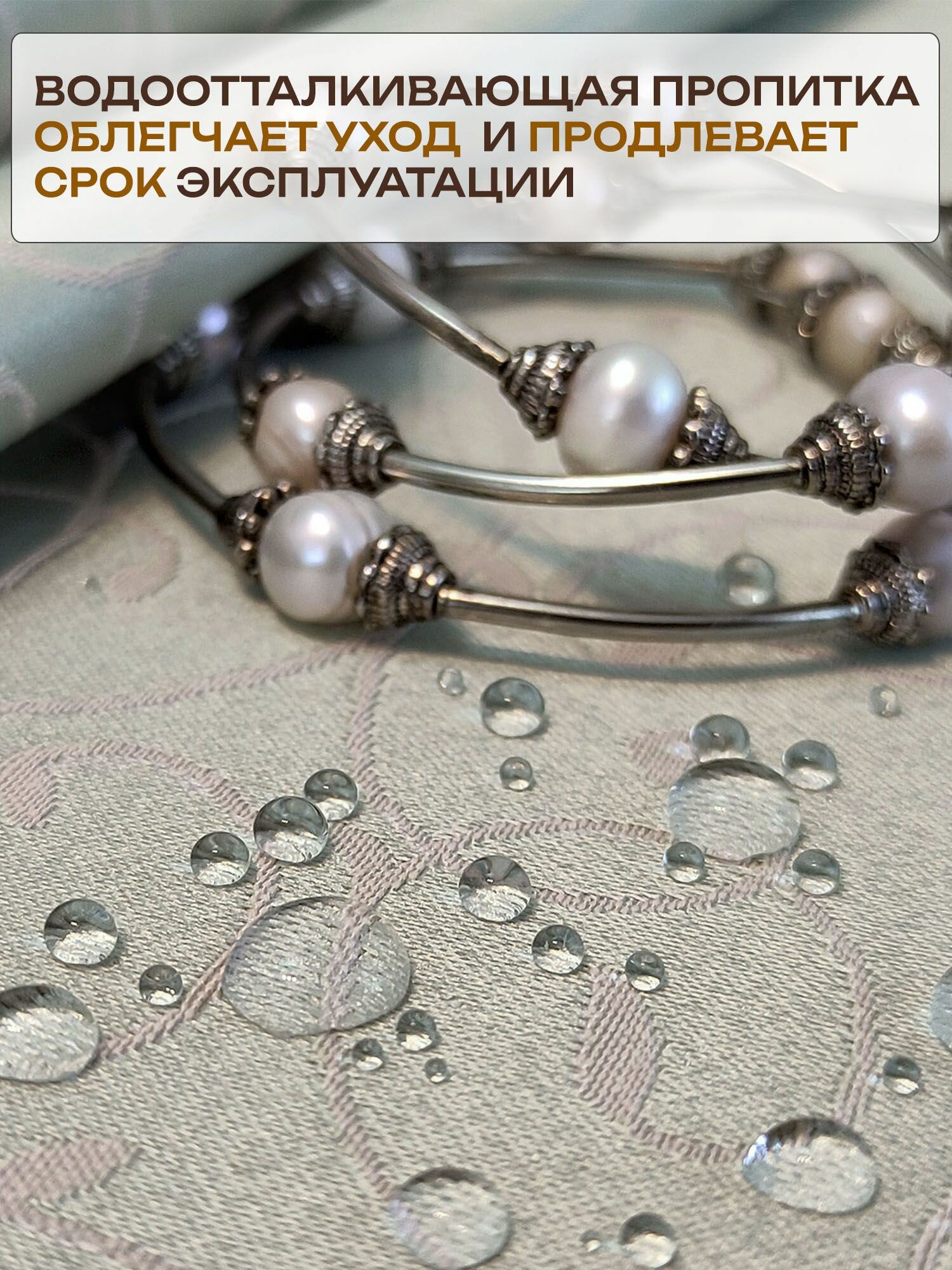 Скатерть 145x260 см. цвет фисташковый узор 1812 тонкий завиток с пропиткой от загрязнений