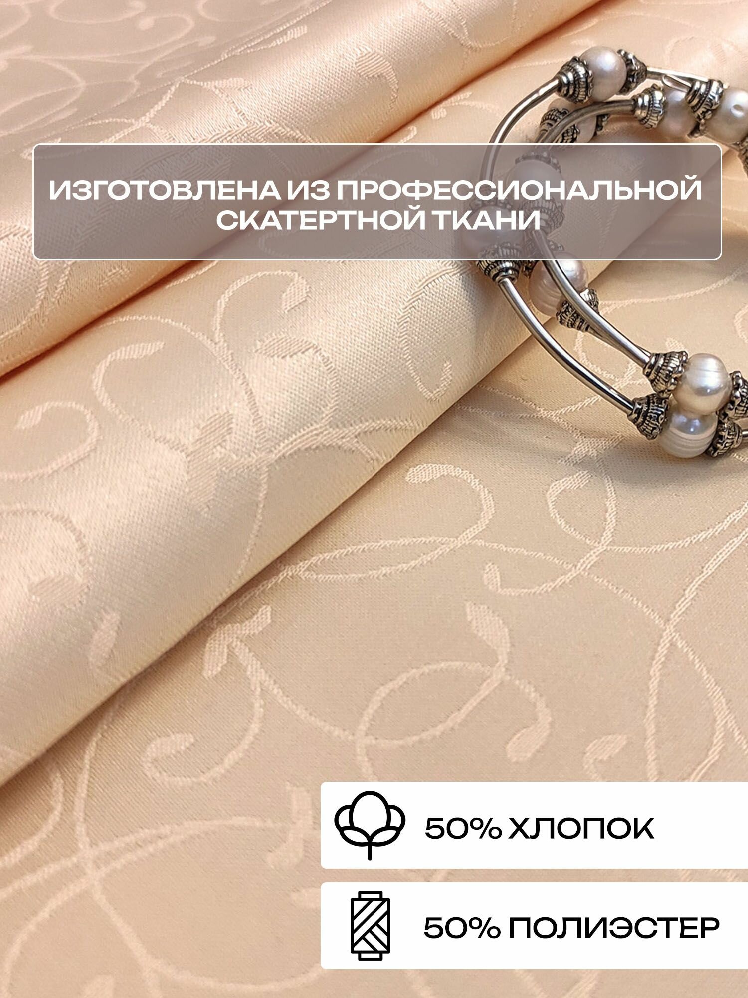 Скатерть 110x150 см. цвет бежевый узор 1812 тонкий завиток с пропиткой от загрязнений