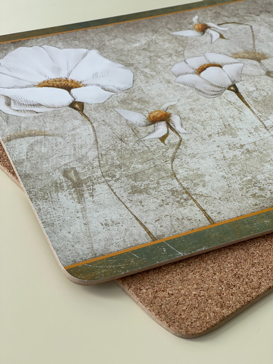 Купить Салфетки на стол сервировочные "Белые маки", пробка, 28x38 см, 4 штуки
