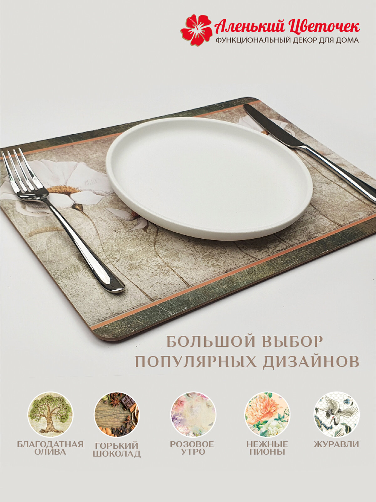 Салфетки на стол сервировочные "Цветущий сад", пробка, 28x38 см, 4 штуки