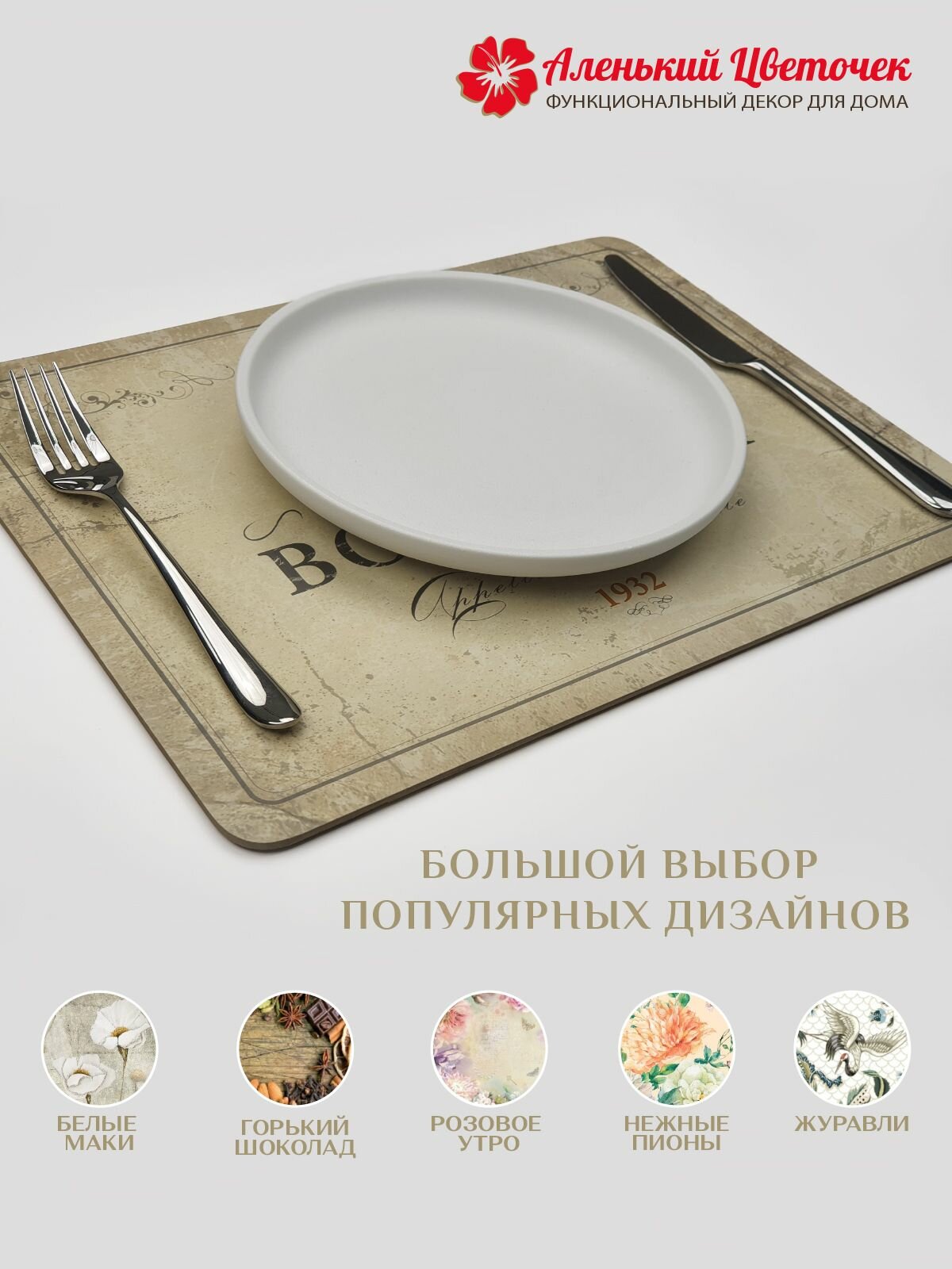 Салфетки на стол сервировочные "Цветущий сад", пробка, 28x38 см, 4 штуки