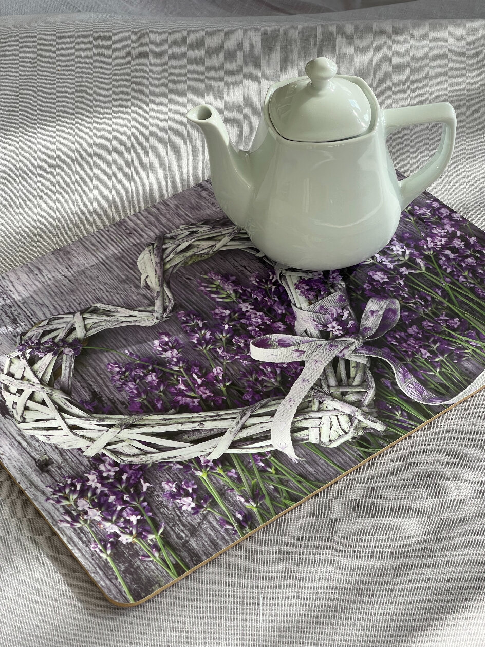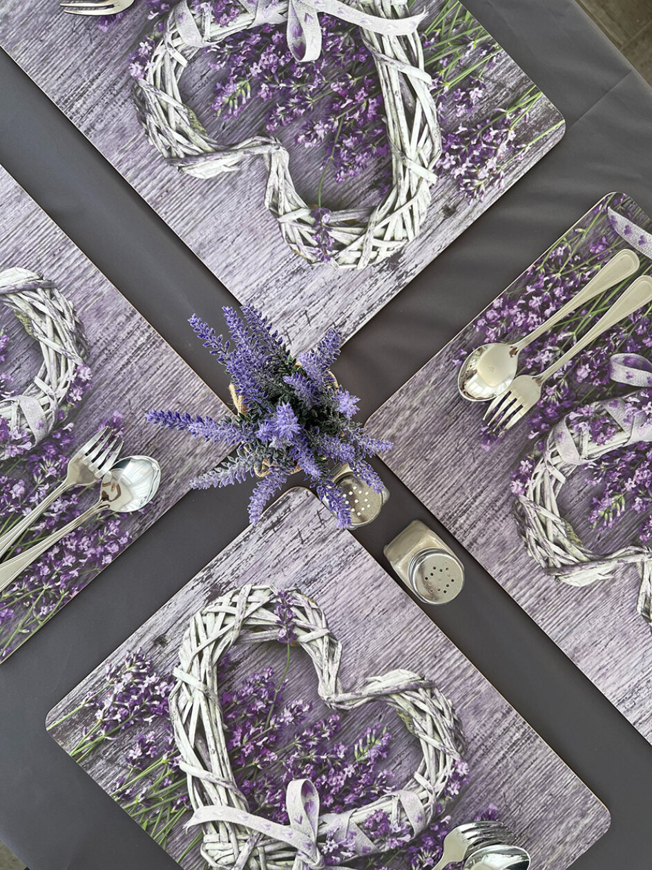 Купить Салфетки на стол сервировочные "Лавандовое сердце", пробка, 28x38 см, 4 штуки
