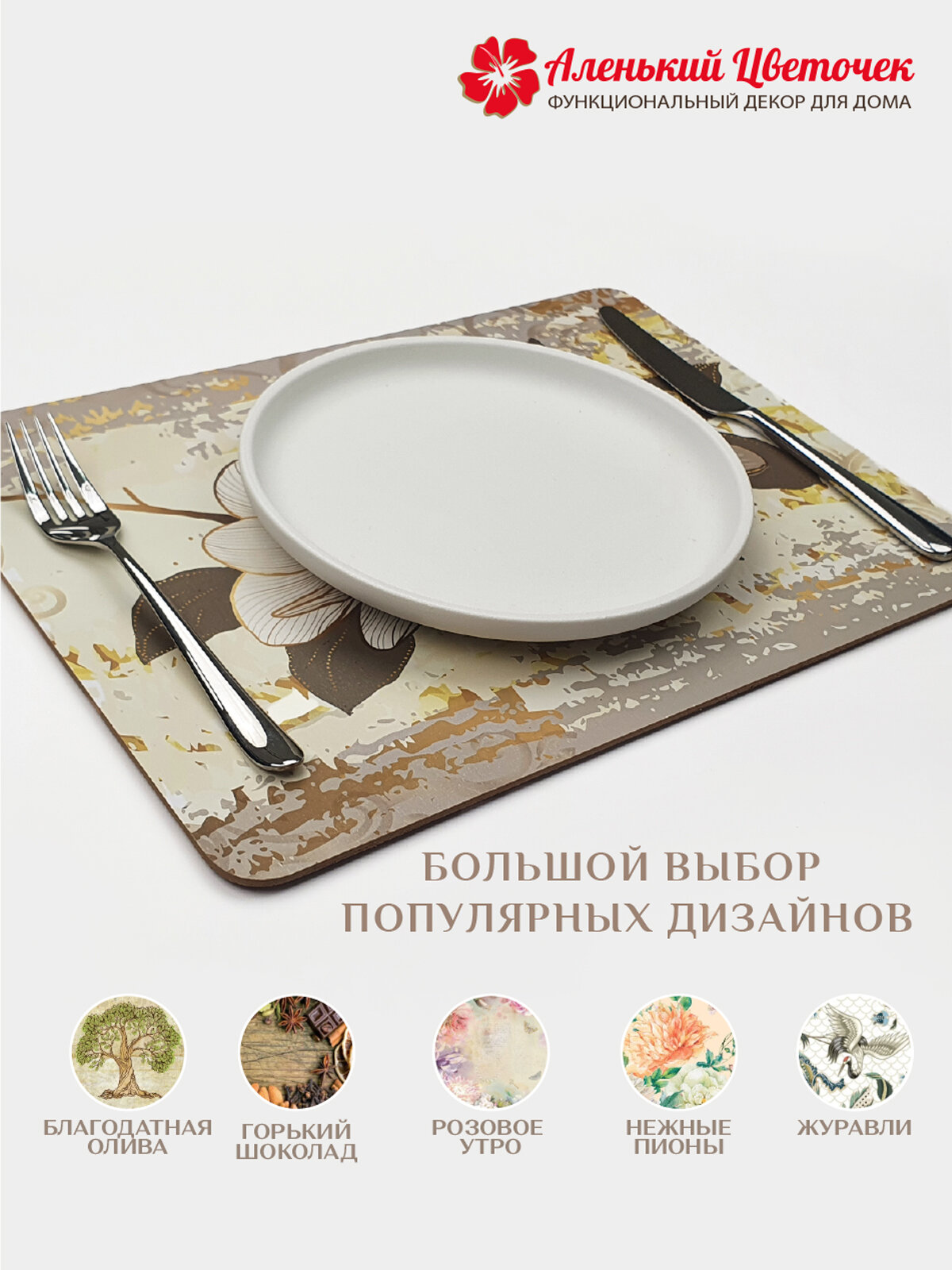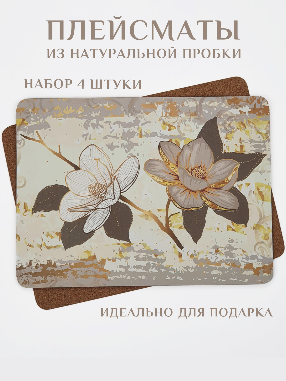 Купить Салфетки на стол сервировочные "Золотая магнолия", пробка, 28x38 см, 4 штуки