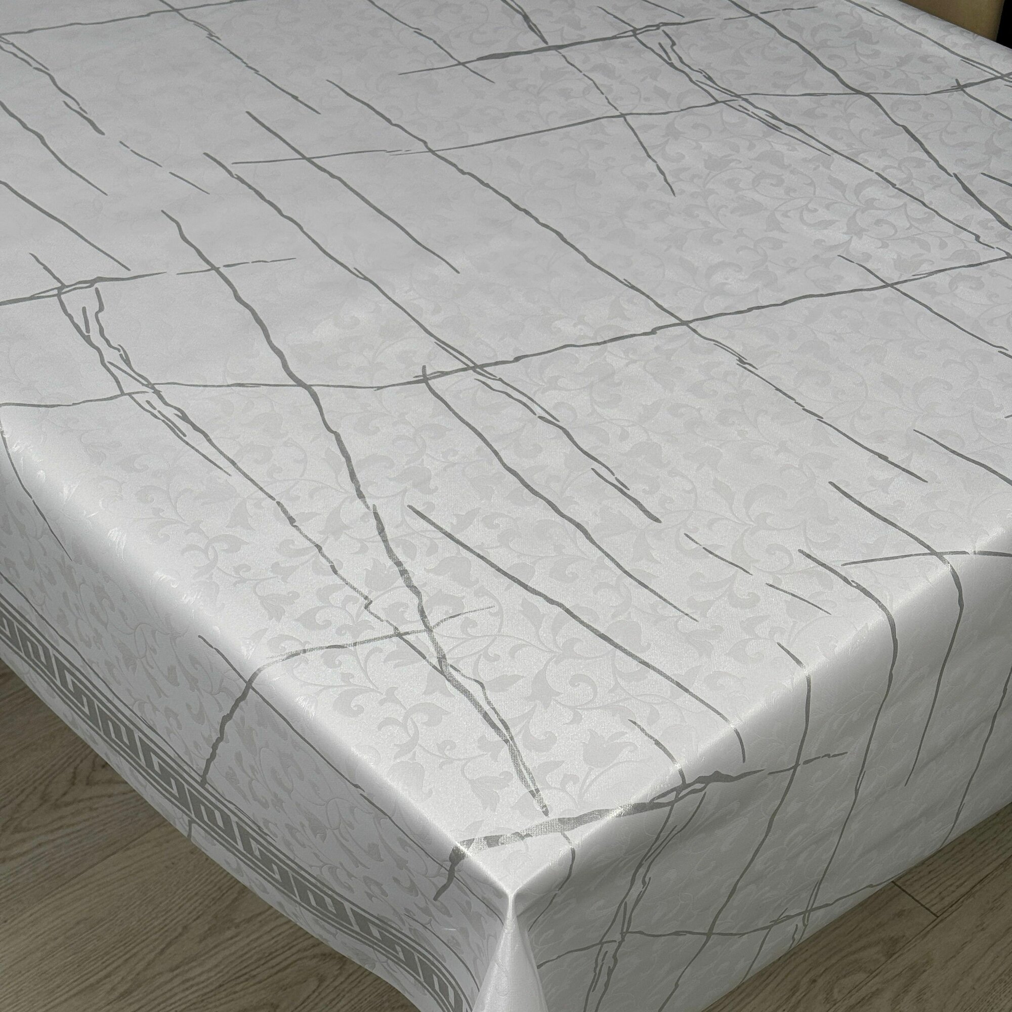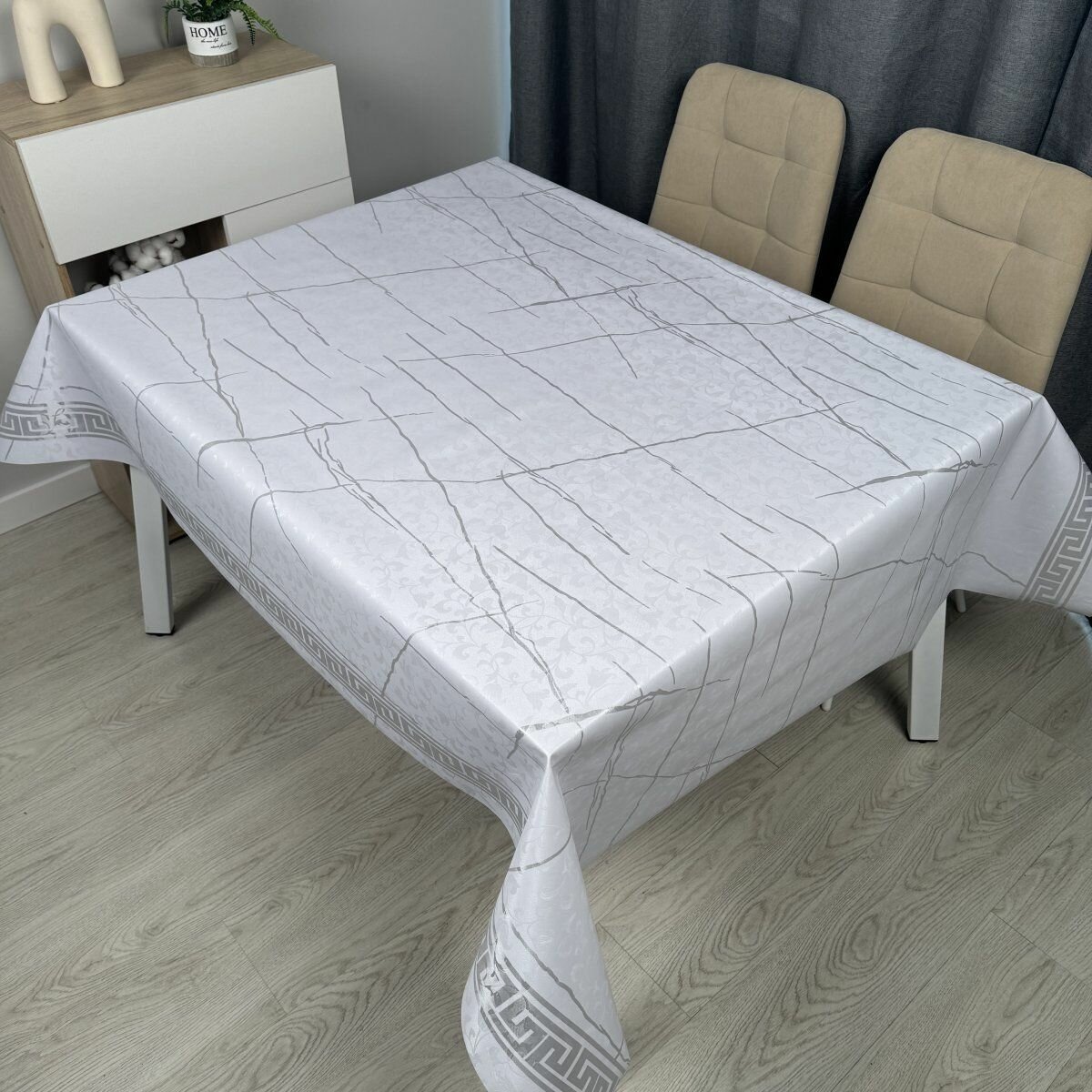 Скатерть на стол клеенка на тканевой основе столовая, 140х180 см с узорами серебристых цветов