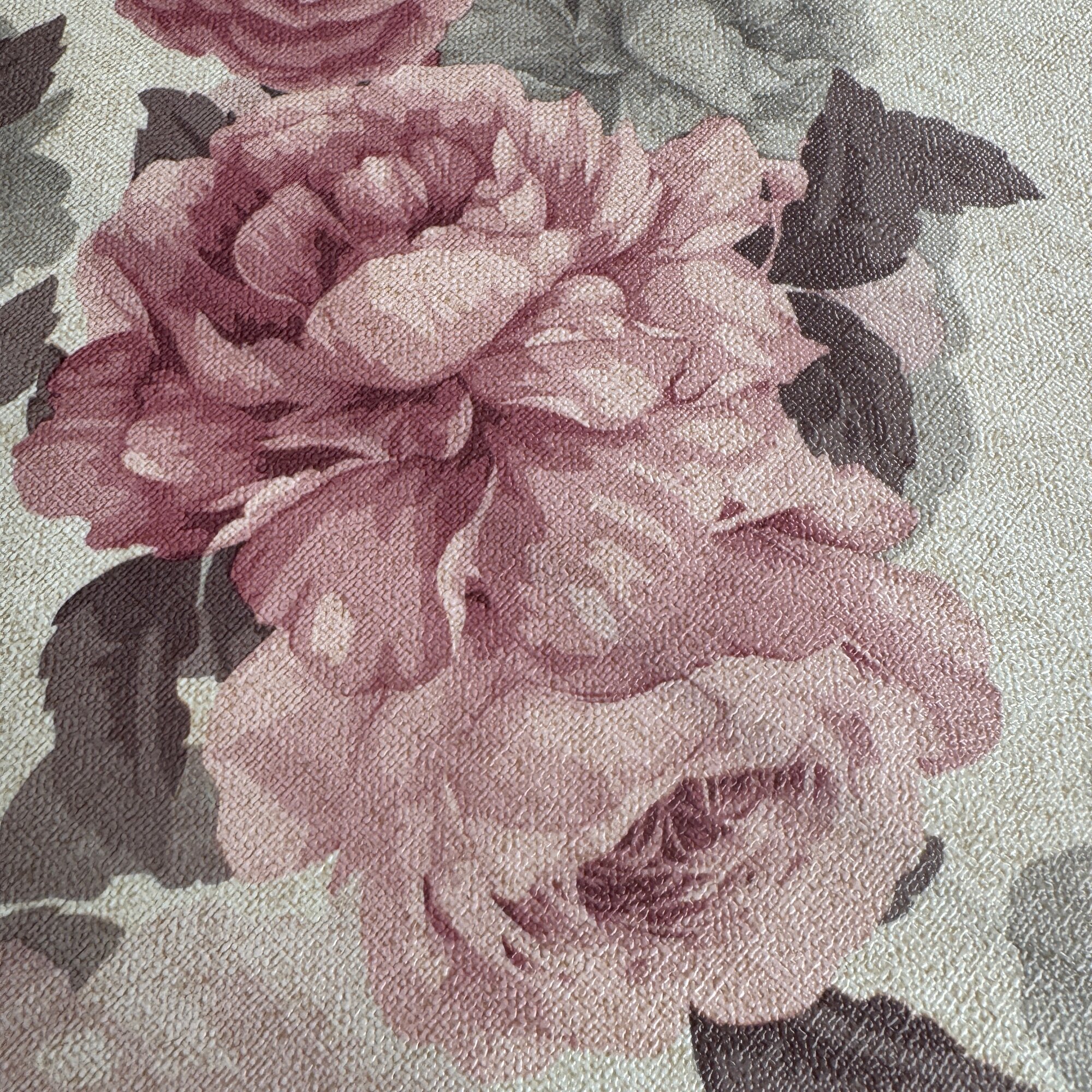 Скатерть Rosenberg 1127-1-2, клеенка, 140x220 см, водоотталкивающая, бежевая с розовыми цветами