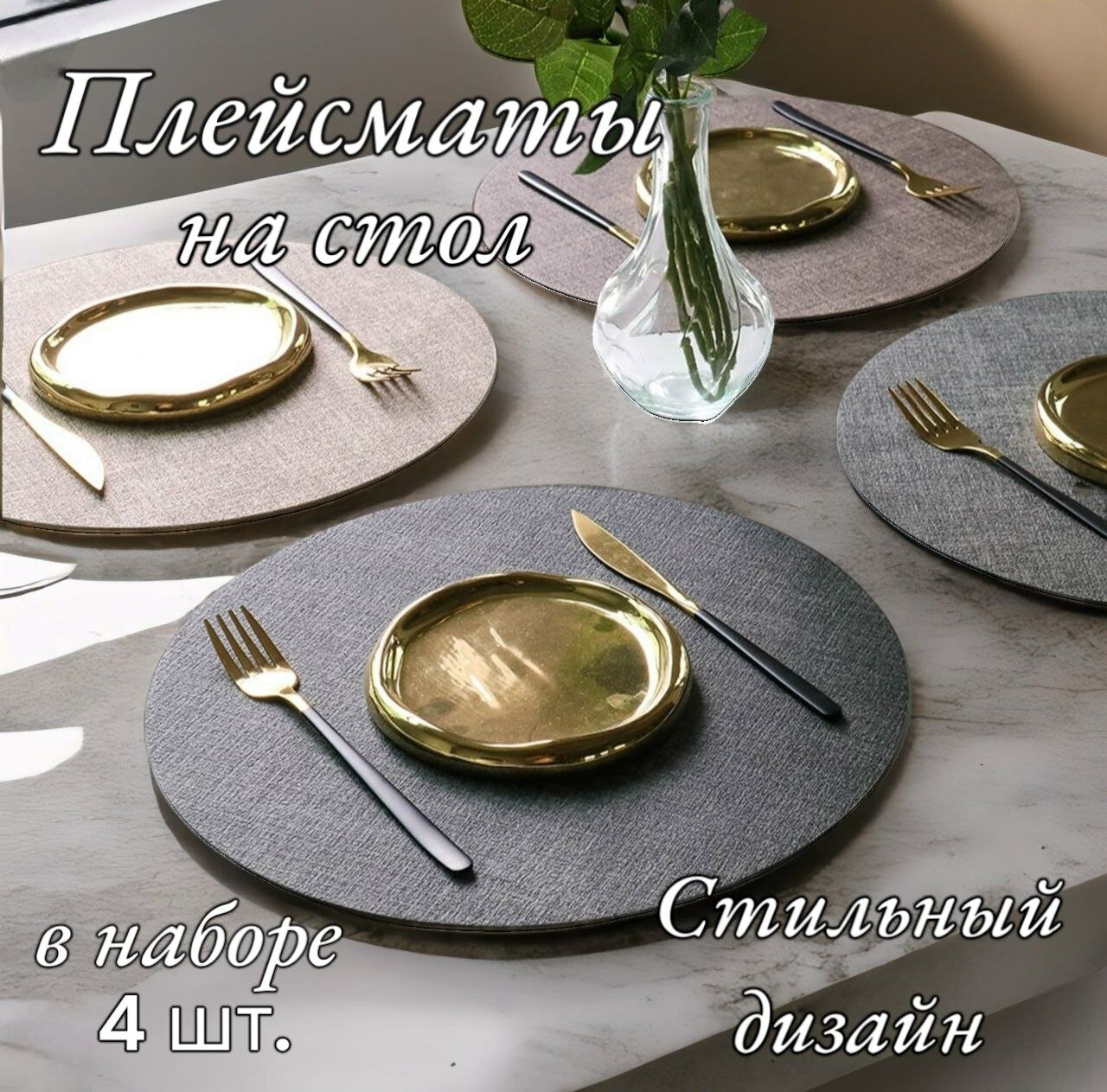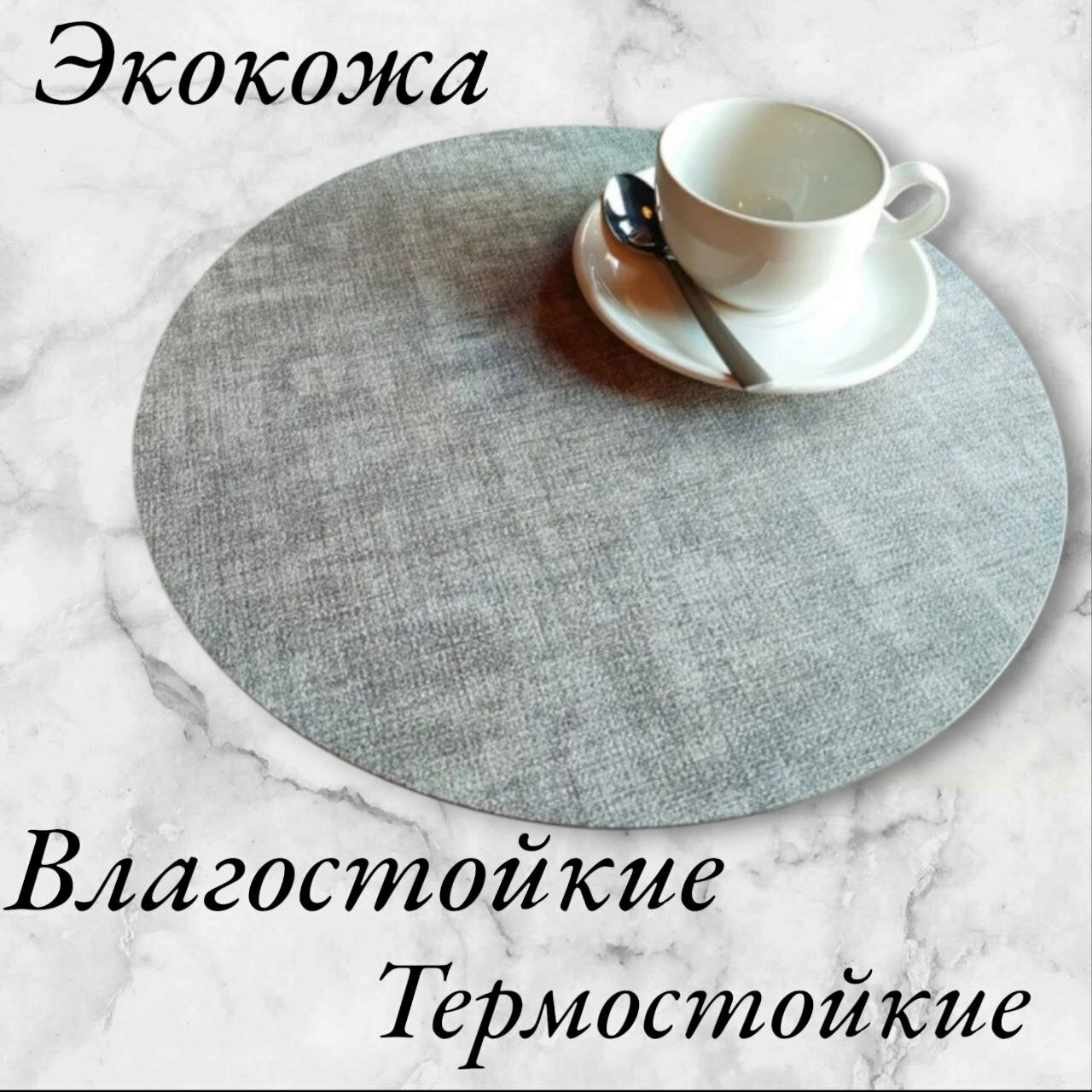 Плейсматы салфетки на стол сервировочные, из экокожи темно серые, круглые, антискользящие, водоотталкивающие, 33 см, комплект 4 шт интересное: