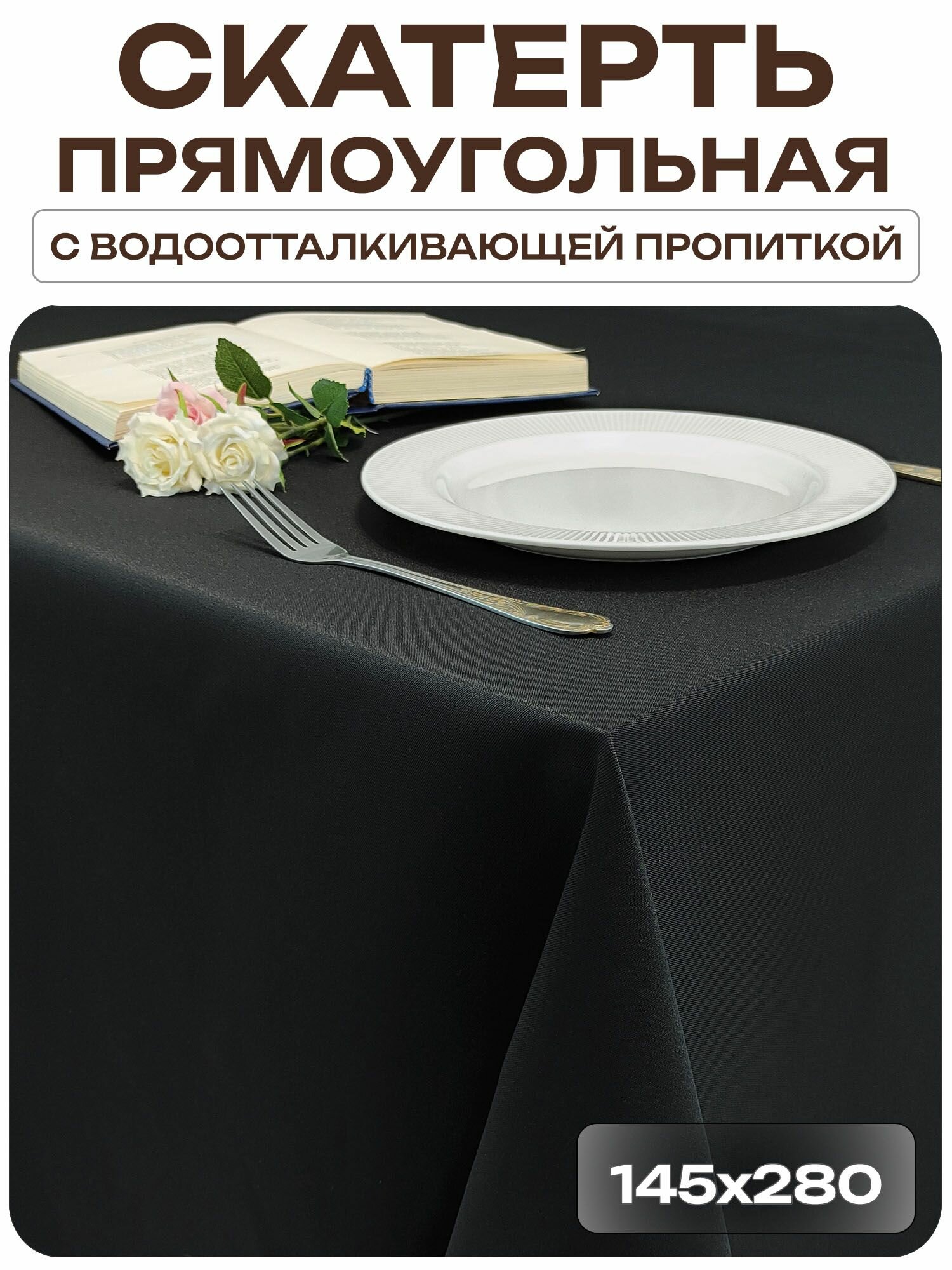 СохранитьСкатерть 145x280 см. цвет черный без рисунка с пропиткой от загрязнений ткань Грета интересное: