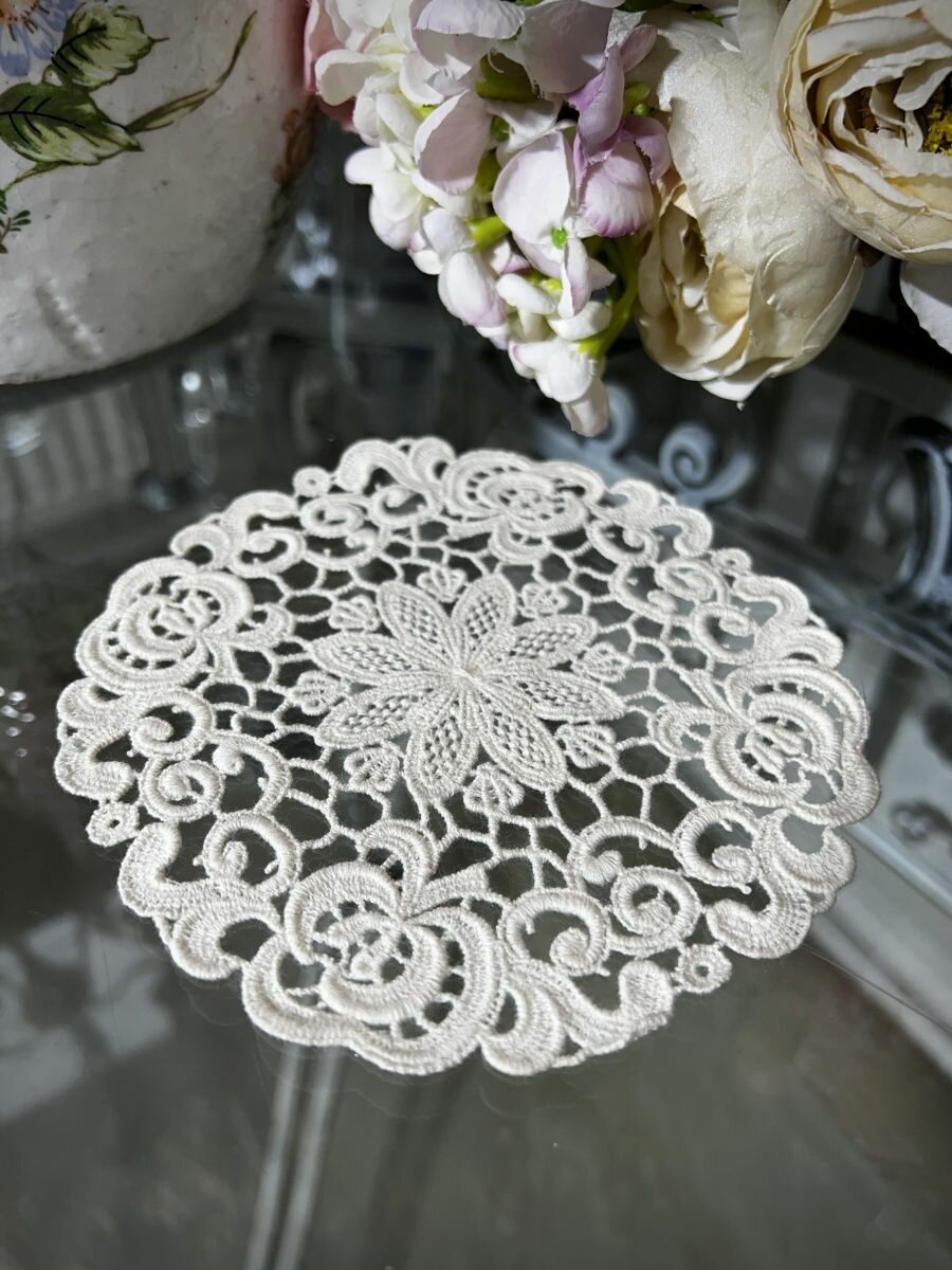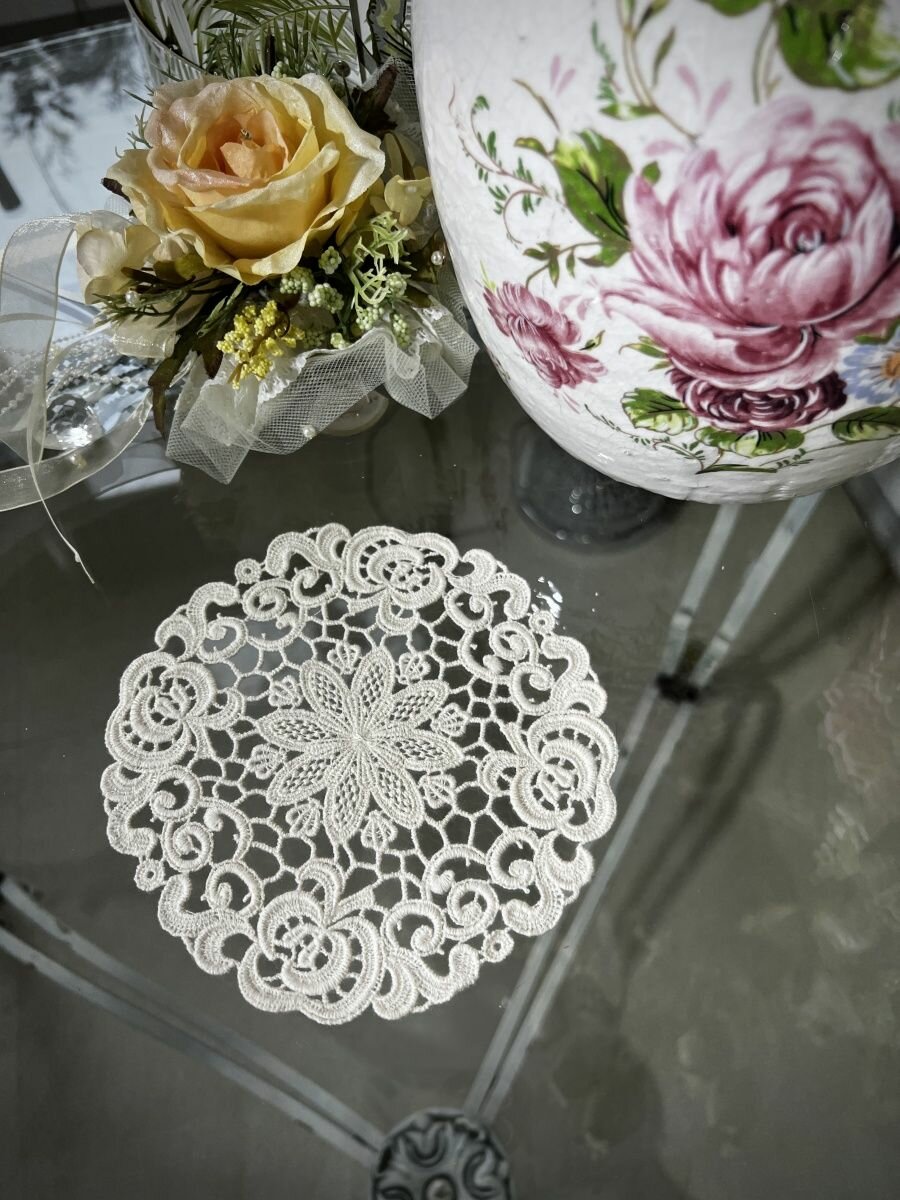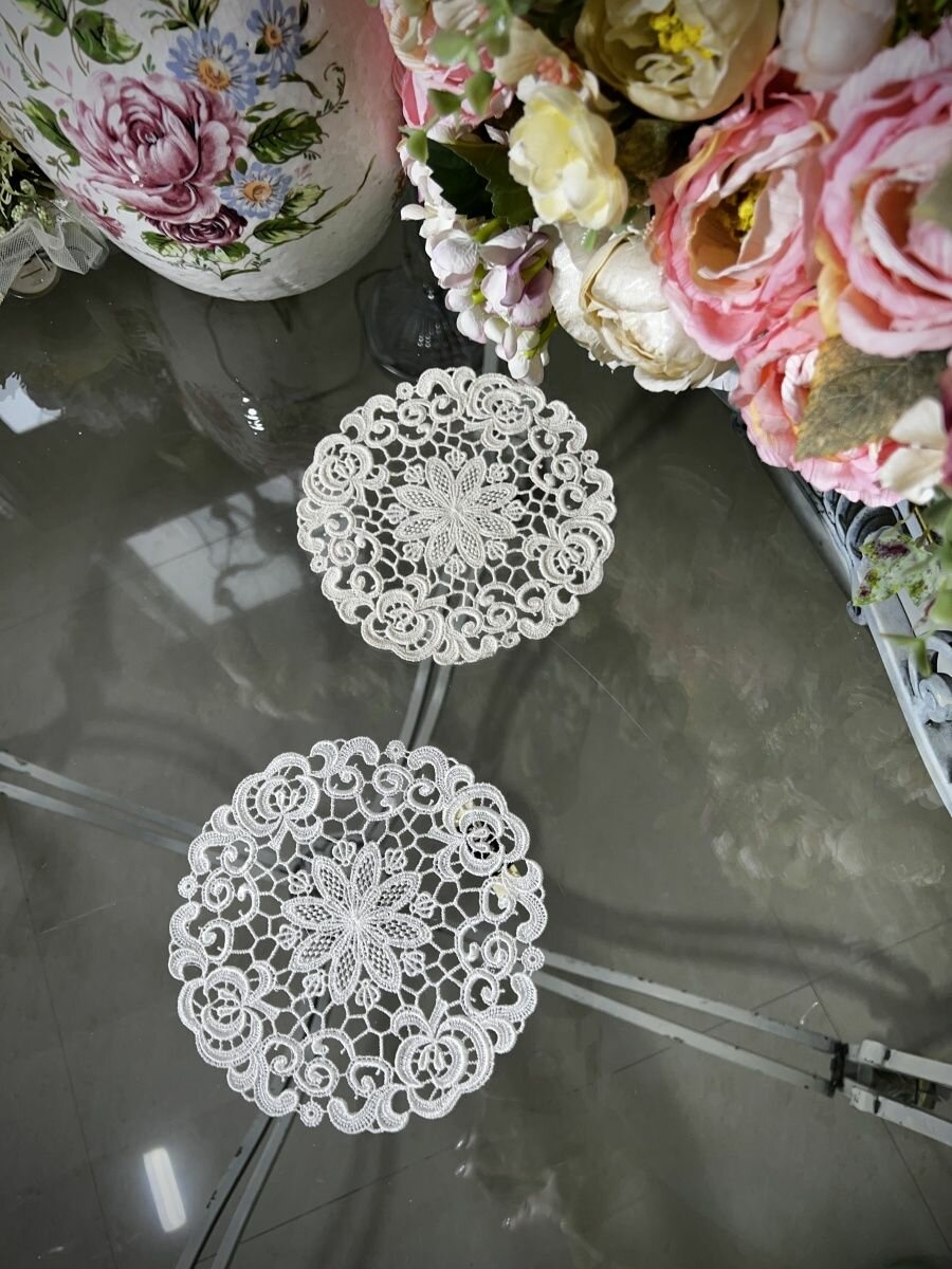 Салфетка Ajourele "A-1027-BEG", кружево, вышивка, ручная работа, диаметр 16 см, бежевая интересное: