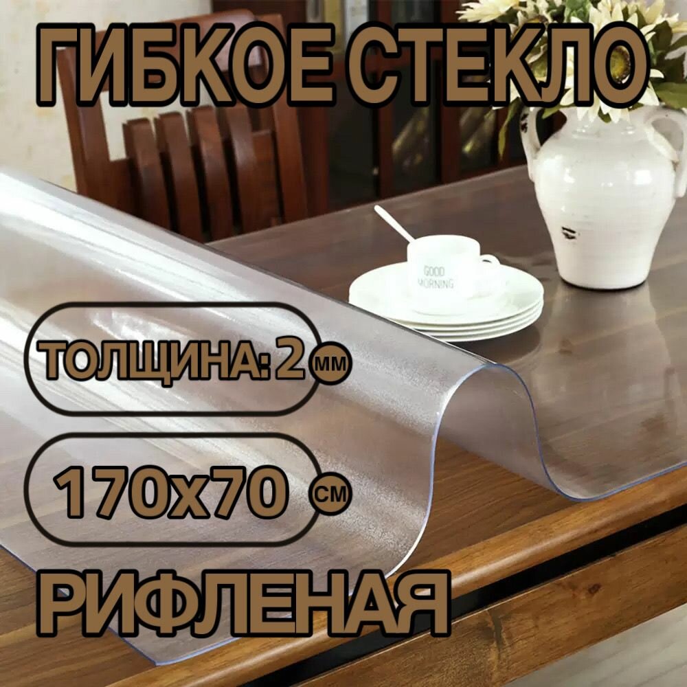 Силиконовая скатерть (гибкое/мягкое стекло). ПВХ скатерть. 170х80 см. Толщина 2 мм. Рифленая