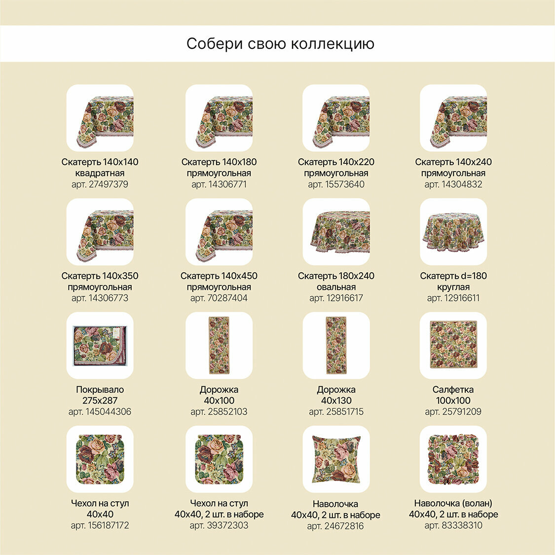СохранитьКвадратная скатерть из гобелена 140х140 см (Италия) с крупными цветками интересное: