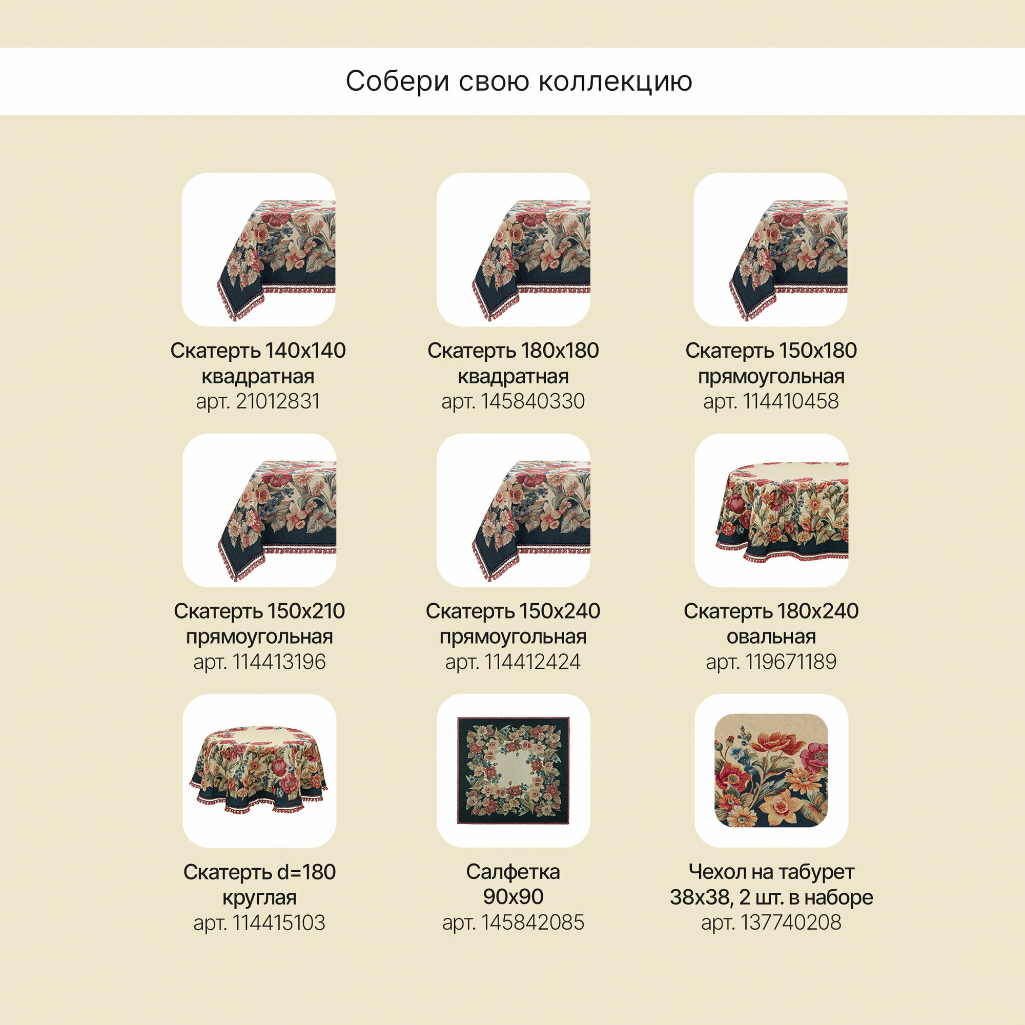 Круглая гобеленовая скатерть 180 см (Италия) с розами