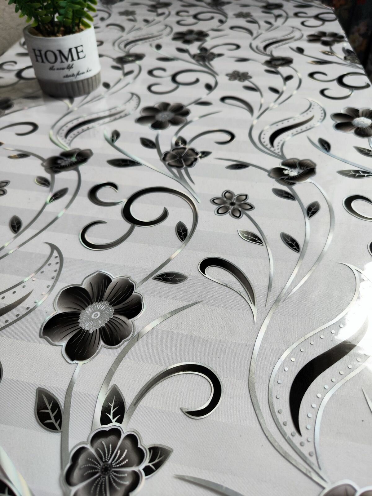 Скатерть с узором серебряные цветы сплошные на стол - 0,7мм100x160см