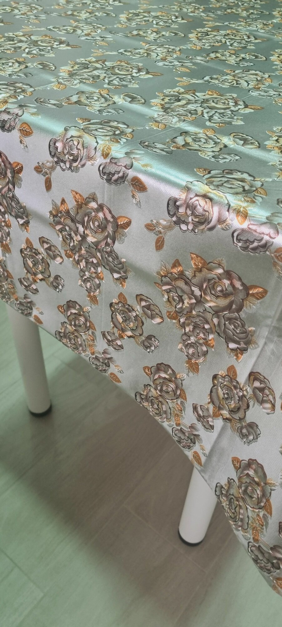 Клеенка-скатерть на стол серебряная с цветами 120х140