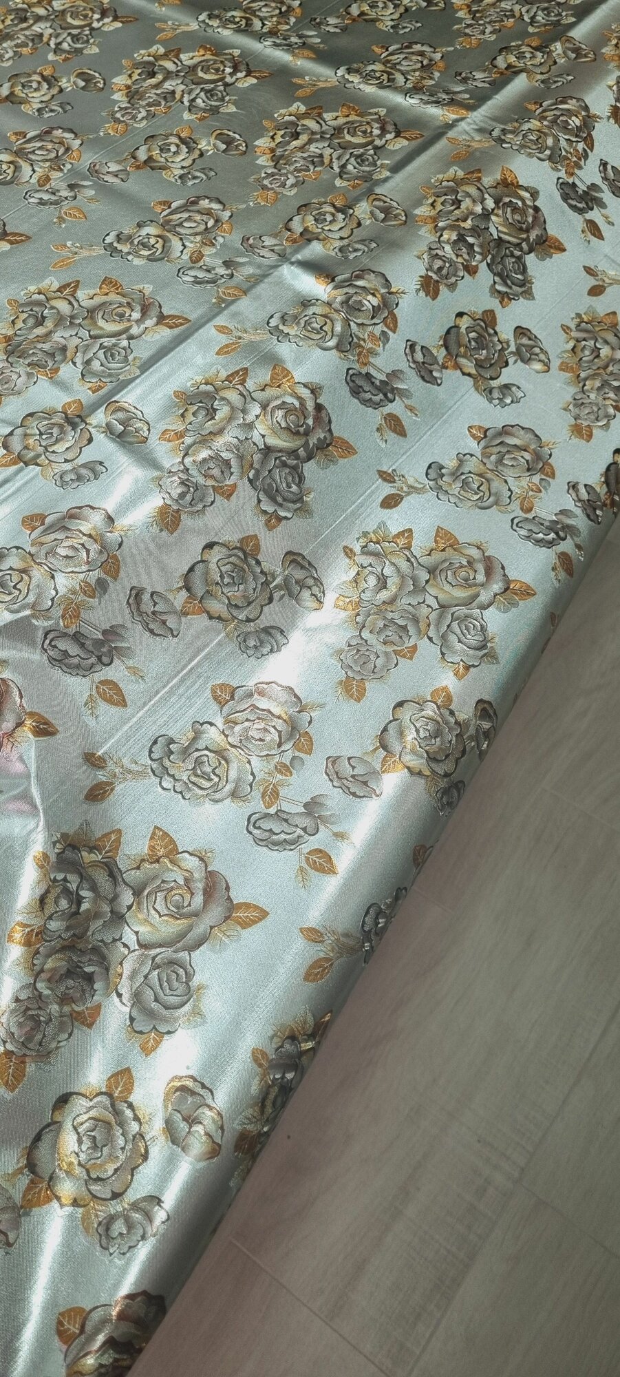 Клеенка-скатерть на стол серебряная с цветами 220х140