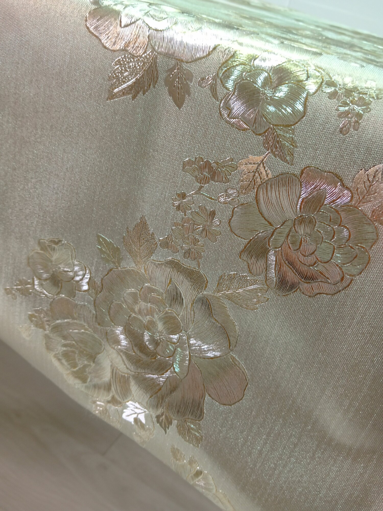 Клеенка-скатерть на стол серебряная с цветами 240х140